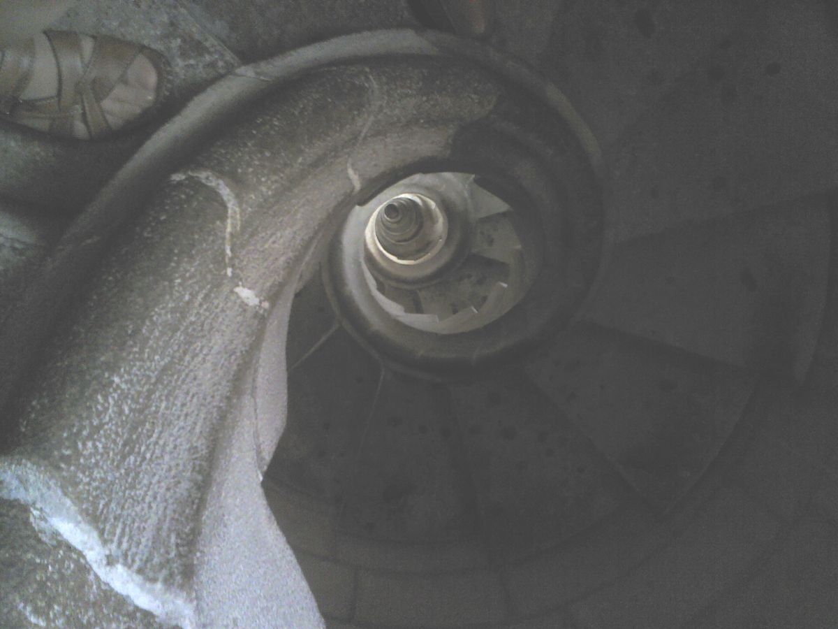 そのエレベーターですが、そこまでして乗らなくても良かったかな、というのが率直な感想でした。たしかにエレベーターを降りた展望室から見るバルセロナ市街の眺めは絶景ですが、この展望室が非常に狭く後続のお客様も次々やってきますので、すぐに階段で降りざるをえませんでした。この階段が曲者で、人1人が通るのがやっとの狭さの上、みんな途中で外の景色の写真を撮ろうと立ち止まるためすぐ詰まってしまい、非常にストレスが溜まります。