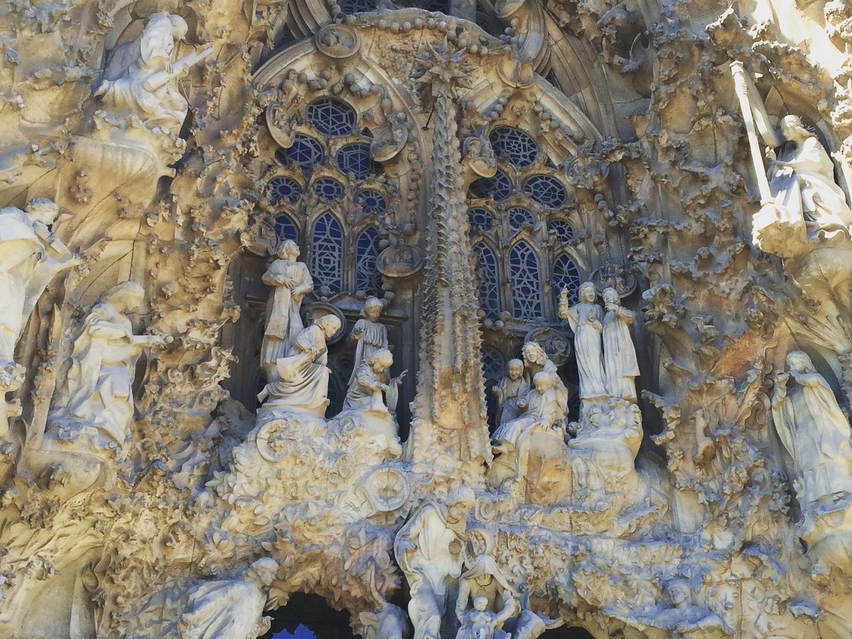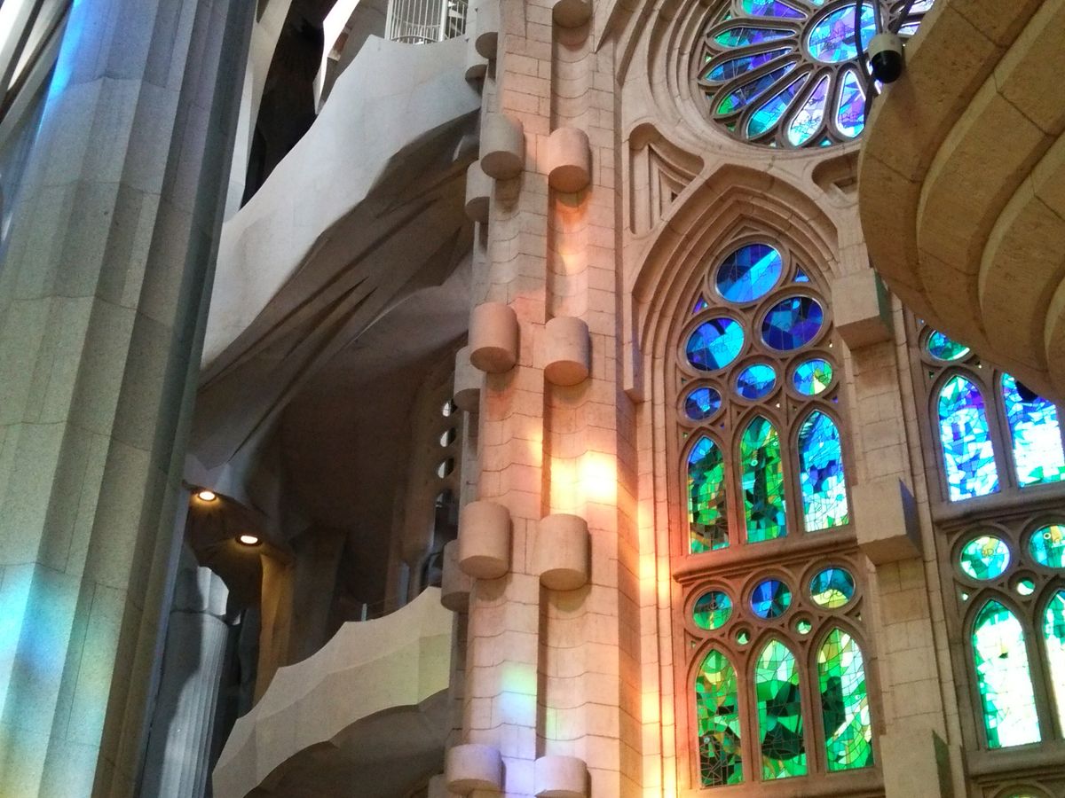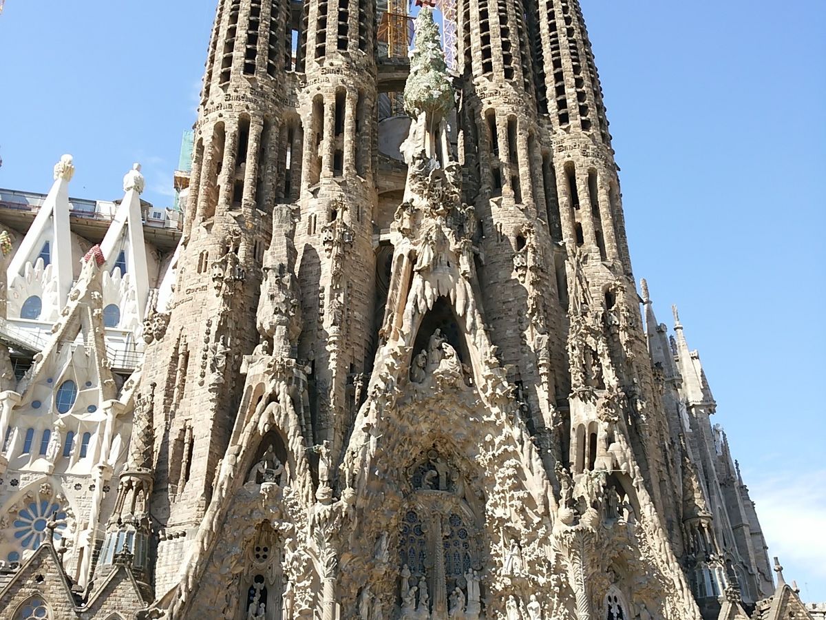 サグラダファミリアの中も外も圧巻でした。外観は見れば見るほど引き寄せられる彫刻で埋め尽くされていて、中はステンドグラスがとにかく綺麗でした。エレベーターを上って、上から見る建物や彫刻、町並みもまた違って見えて、感動しました。