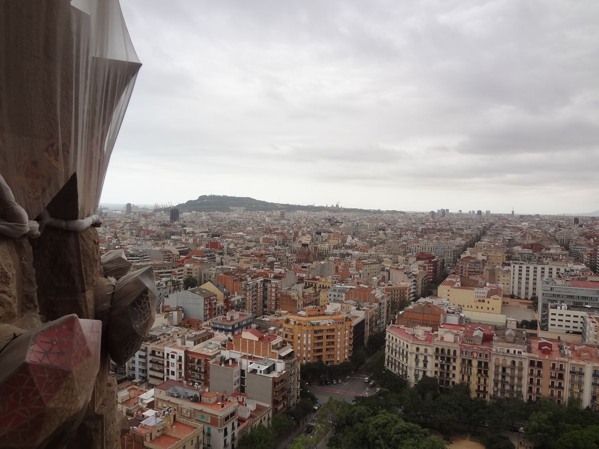 とあるTV番組で見た塔の出窓のような所から街を見渡せることを期待しながら、サグラダファミリアに行きました。ところが、今回のツアーで予約されていたのは、期待していた塔とは反対側の塔でした。残念!