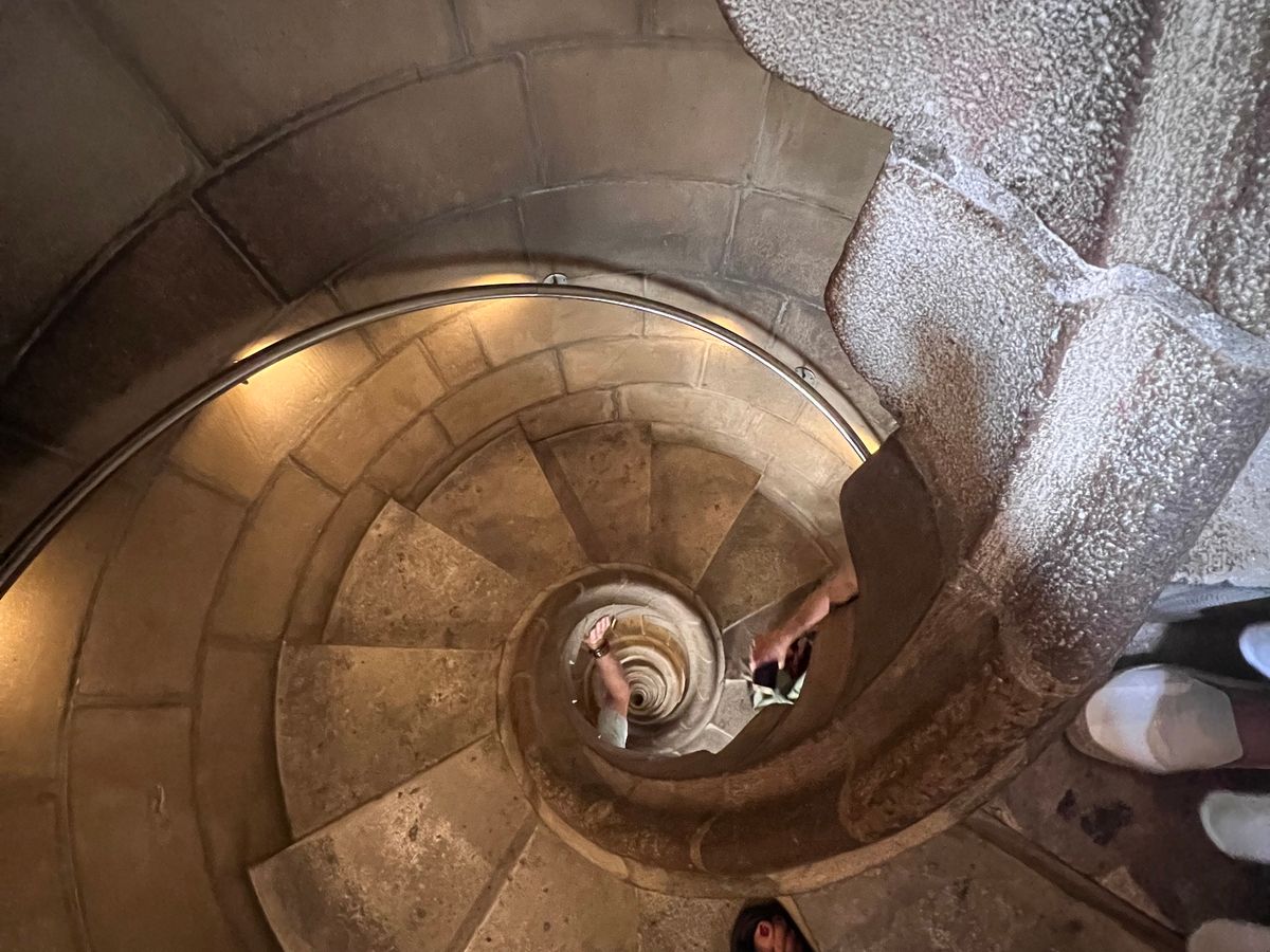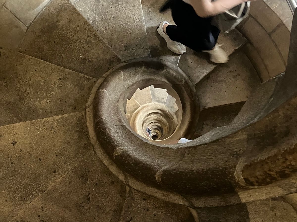 サグラダファミリアに着くとエレベーターに乗って鐘塔へ。上の方まで上がって階段で降りるのですが、中から間近で見られることと、下を覗くとこの建物の高さも実感でき、貴重な体験だったと思います。