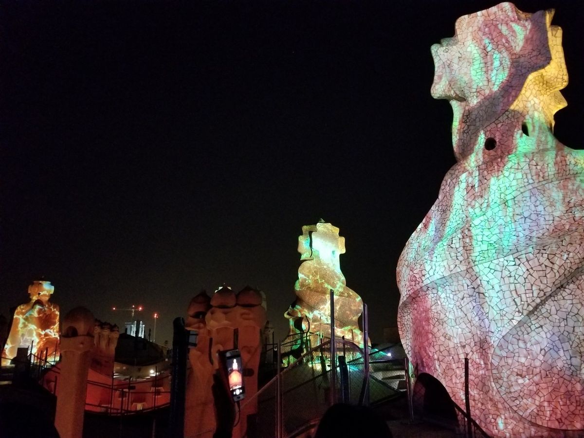 世界遺産カサ・ミラのイルミネーションツアーは、特徴的な屋上のモニュメントにプロジェクションマッピングを施し、幻想的な世界を堪能できました!