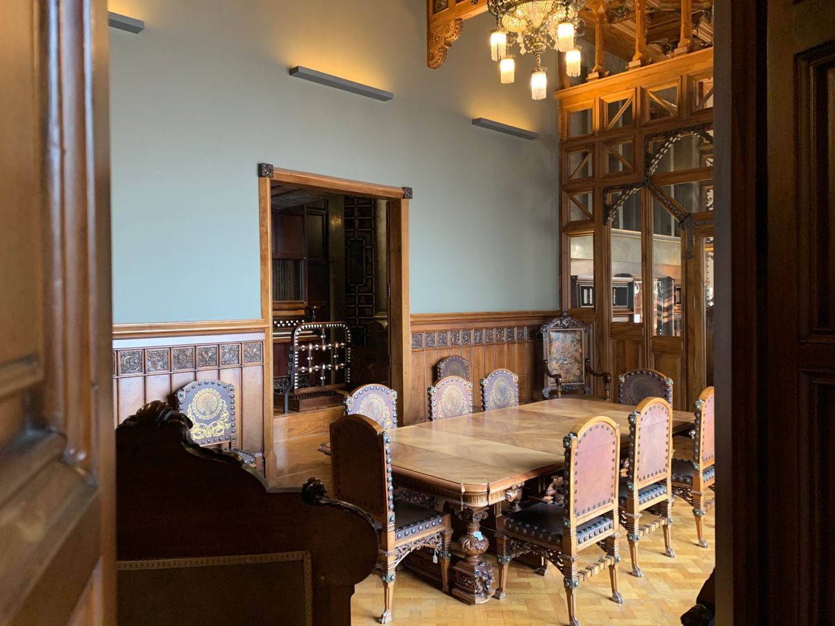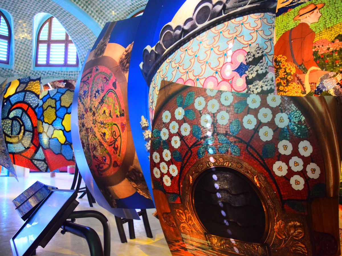 初めに半円形の小ホールで映像を見、概要説明を受けます。次に音楽堂の1階・2階に入りますが、いずれも席に腰を掛けてしっかりと説明を聞きますので、英語のわからない人にはけっこう時間が長く感じられると思います。が、その間ずっと周りを見ていられるので、モンタネル建築の素晴らしさを詳細まで堪能できます(約1時間)。