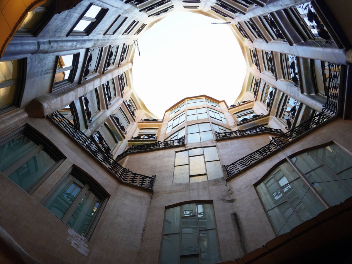 取り合えずエレベーターで屋上に上がり内部を観覧しながら降りて来る方式です。普通に回ったら1時間はかからないです。内部はサグラダファミリアよりも廻るのに手ごろで満足感はあります。ショップは割と充実してます。バルセロナの人気施設はチケットのソールドアウトがある(割とある)ので時間短縮の用途よりも確実に入場するために事前にチケットは確保した方がいいですよ。