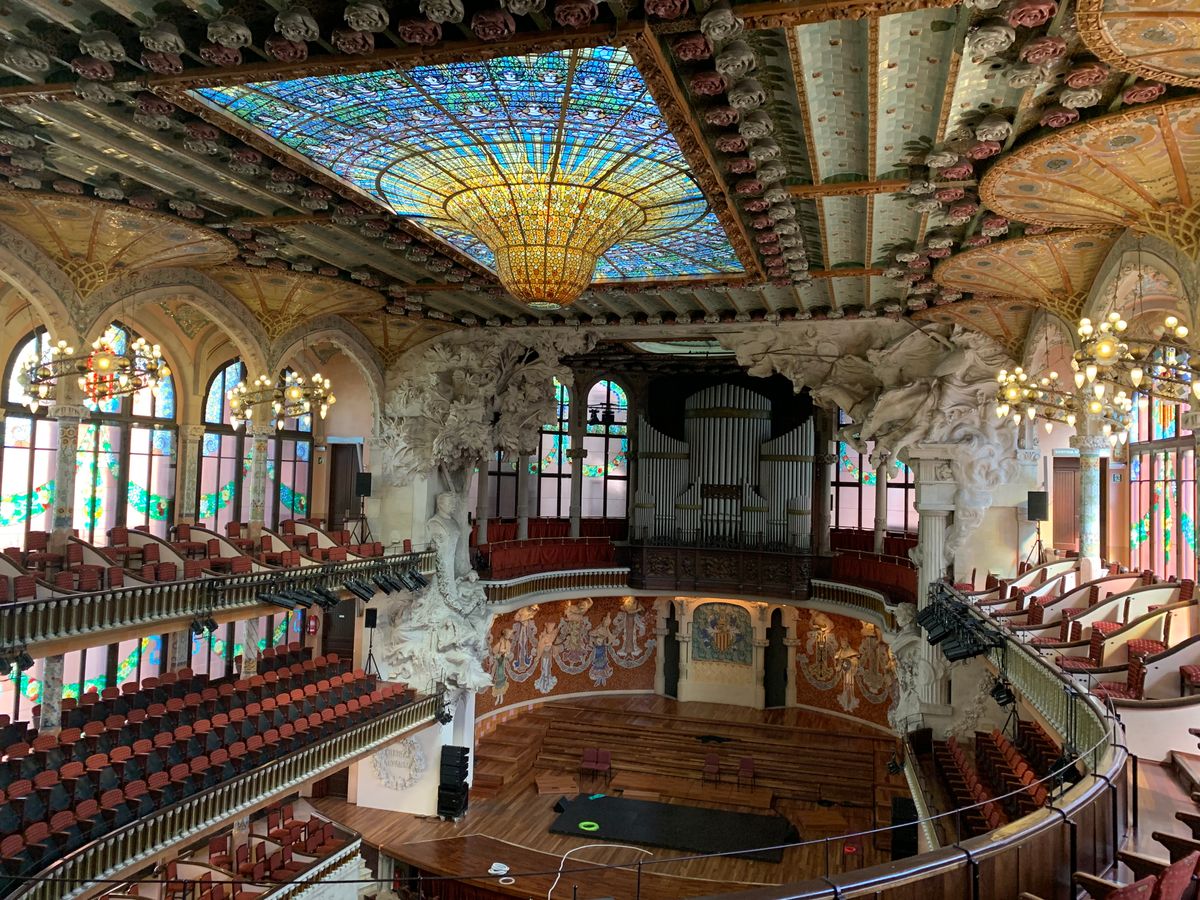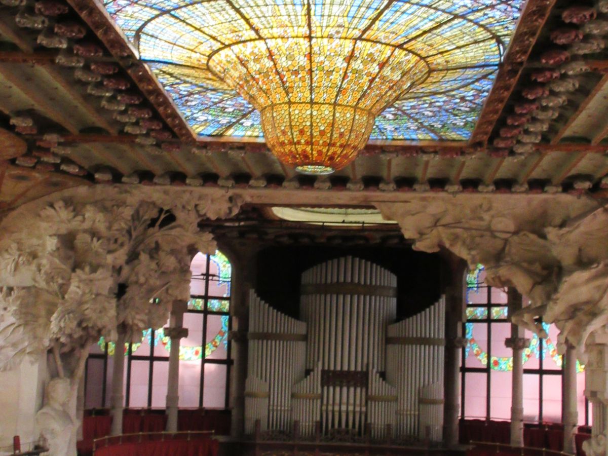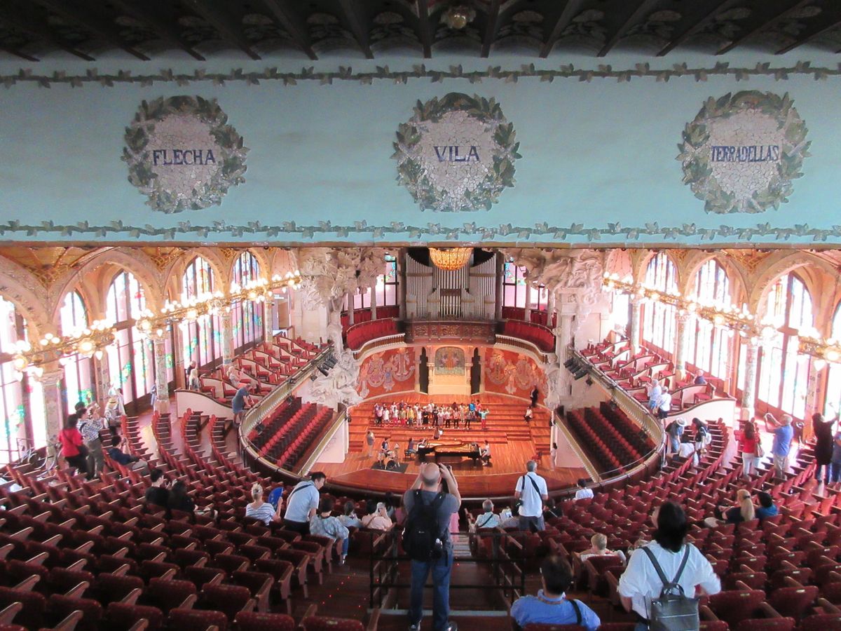 見どころの多いバルセロナ、ガウディ作品ではありませんが、アールヌーボー調のこの音楽堂は必見で、事前予約をお勧めします。コンサートやフラメンコのついでに見学も有りでしょうが、通常はこの一時間程のツアー予約でしょうね。場所は、バルセロナ旧市街の近くで迷うことは無いと思います
