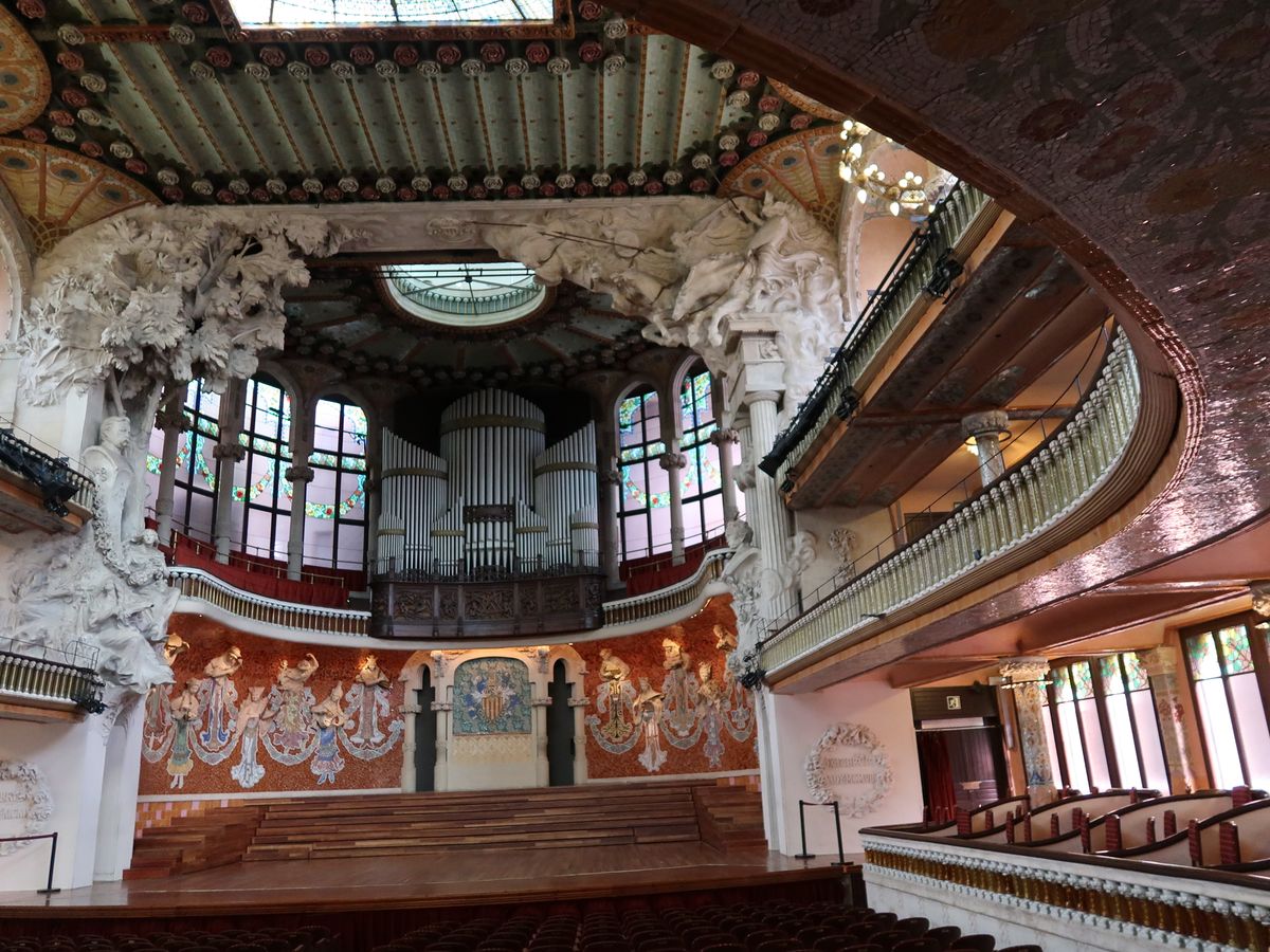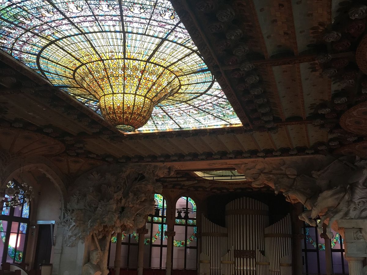 私がバルセロナで唯一ガウディ以外にきちんと見た建築がカタルーニャ音楽堂なのですが、最初はカタルーニャ音楽堂もガウディがデザインしたのかと思っていました。でもあきらかに色合いとかがガウディっぽくなくて、かわいらしくもあり豪華で素敵で感動的でドメネクさんのデザインと聞いてなんとなく納得してしまいました。