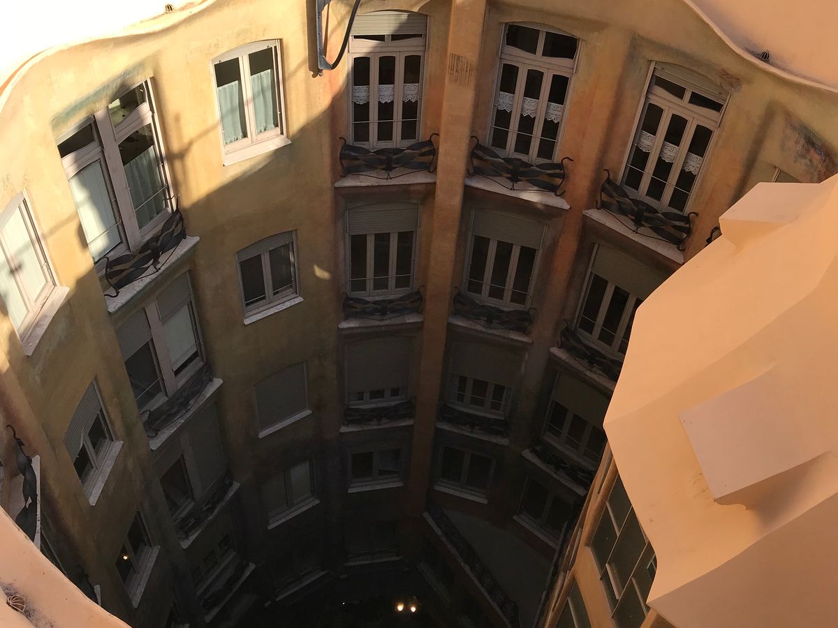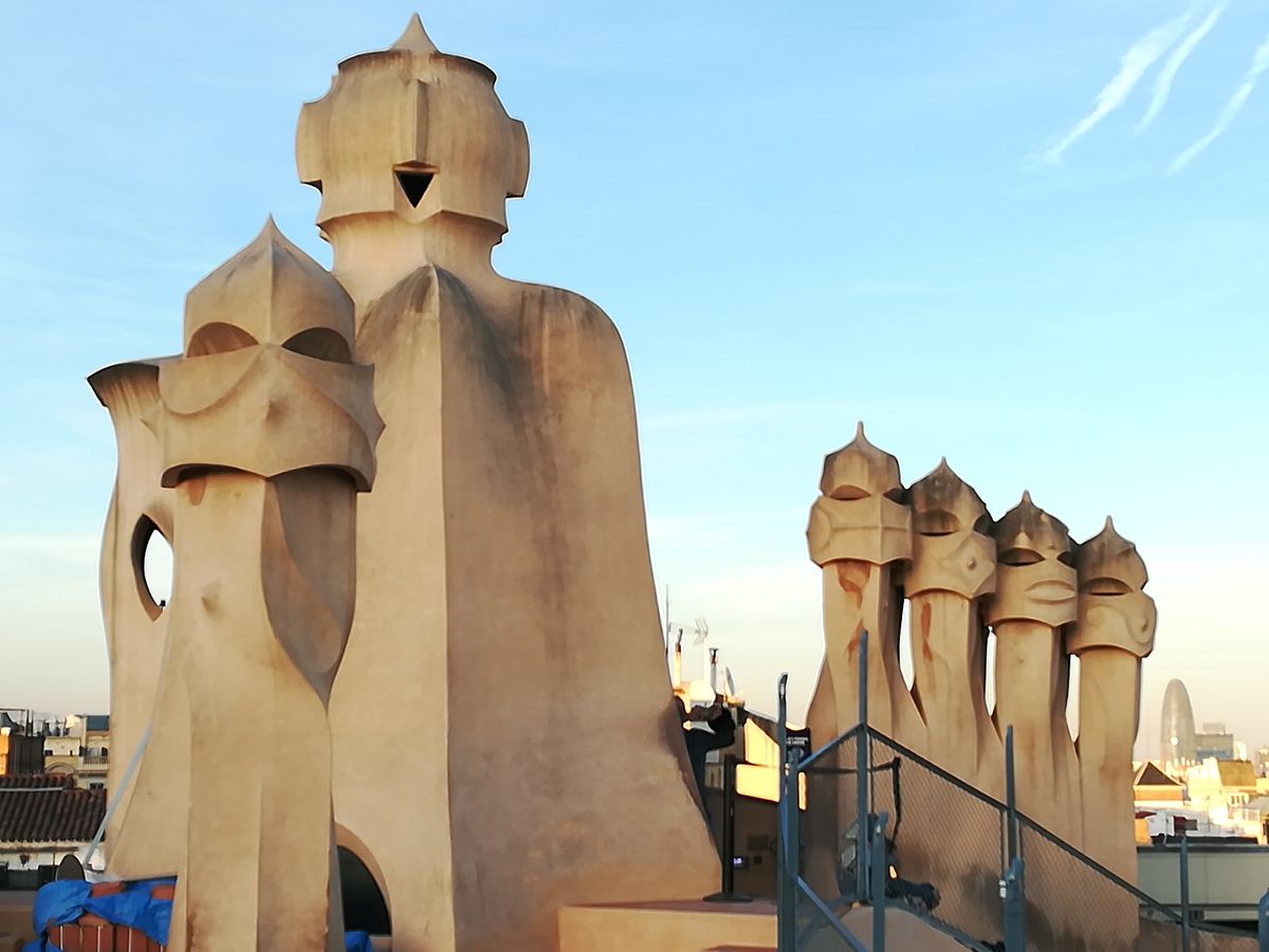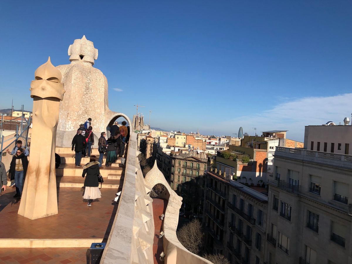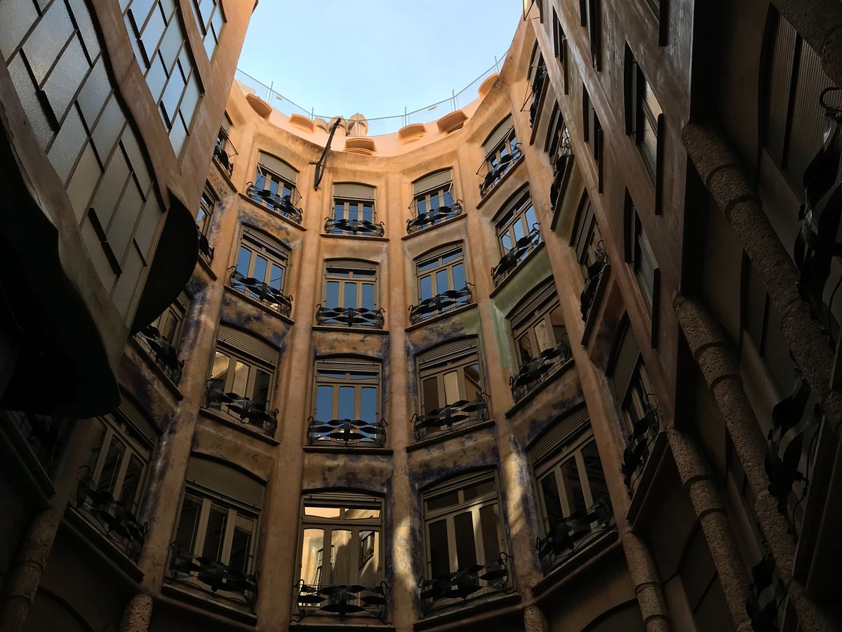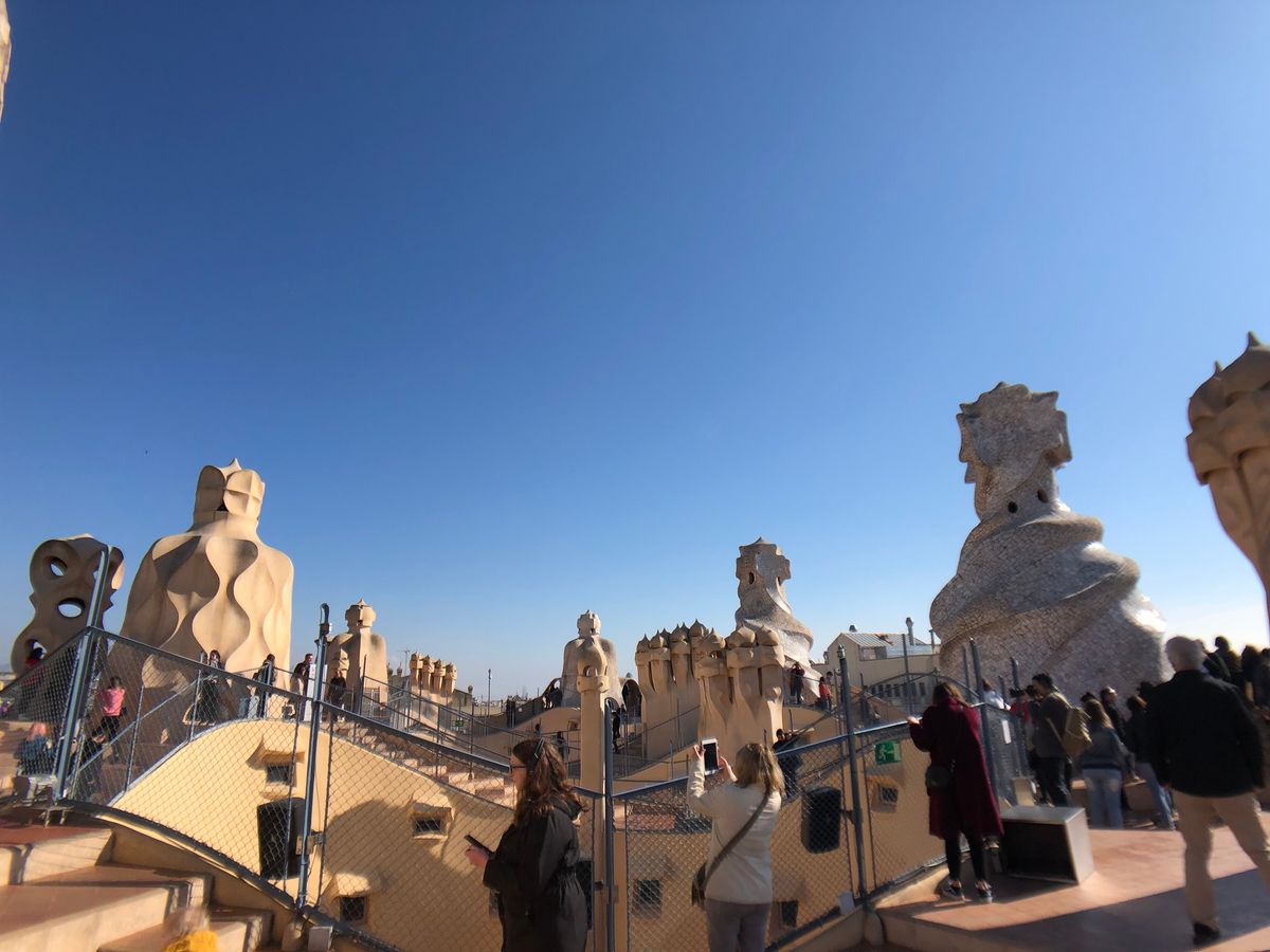 混み合うんですね。世界遺産にも指定されている、「カサ・ミラ」。ガウディの作品の1つです。明るいクリーム色から、ブラウンにかけての色が多く使われています。ですので、カサミラに入ると、自分が土の中にいるような感覚になりました。