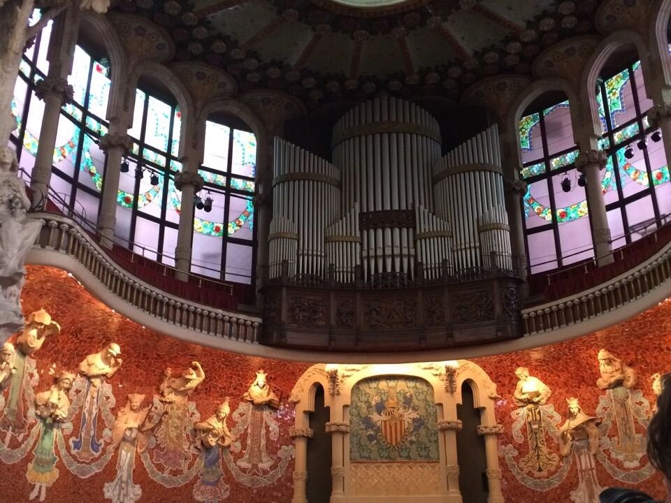 ガウディ以外の建築も見ておきたくて予約しました。ガイドツアーでしか入れないので、渡航前からの予約は必須です!英語ツアーしかなかったので、なんとなく、、、しかガイドは理解できませんでしたが、音楽堂の中の迫力は最高です!天井のステンドグラスの美しさにはうっとりでした。パイプオルガンの音色も聞かせてもらえましたよ!