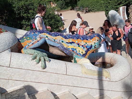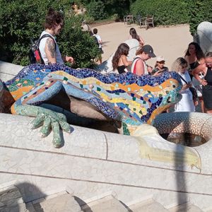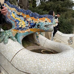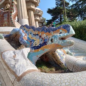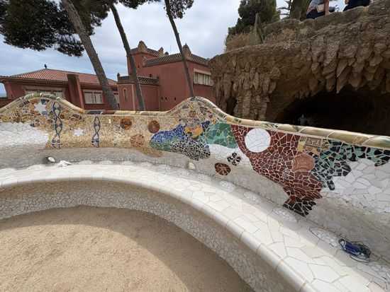 ヨーロッパ旅行の1番行きたかった。グエル公園。以前美術館で見てから自分の目で見てみたかった。開園前から並んで1番乗りで、誰もいないところで念願のトカゲに対面!少し修復中であったけど、やはりおとぎの国のようで素敵♡