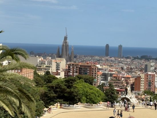 遠くに見えるサグラダファミリア、海まで見渡せるバルセロナ市内、いい眺めでした。