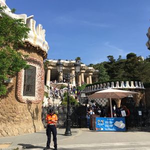 グエル公園はガイドのカルロスさんの説明を聞きながらの無料エリアの散策。有料エリアの入場は含まれていなかったけれど公園としての景観や歴史を堪能した。有料エリアもそこここで見ることができて写真も撮れた。