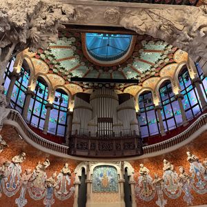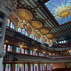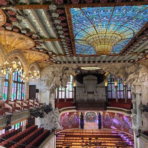 モデルニスモ建築といえばガウディの作品群だけではありません!バルセロナが誇る世界屈指のモデルニスモ建築が、モンタネールによる設計のカタルーニャ音楽堂。外観のデザインも素敵ですが、コンサートホールの絢爛豪華さはまさに圧巻。自由入場はできず、ガイド付きの見学ツアーに参加する場合のみ入場が可能なので、事前予約が必須です!また、現役の音楽堂として使用されているので、日にちがあえばコンサートを楽しめるプランもおすすめです♪