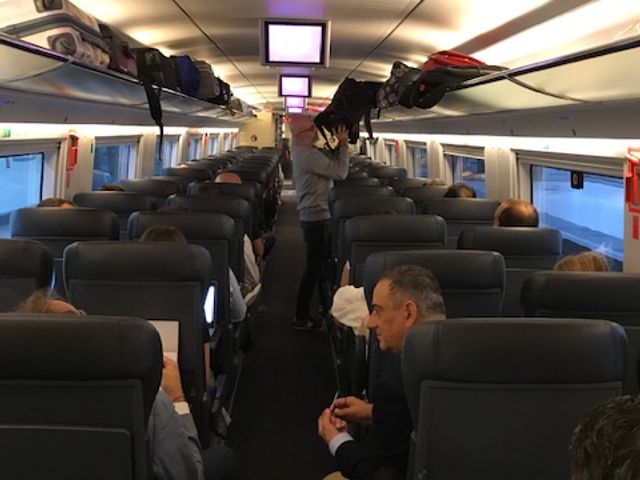 集合時間になり、ガイドの方がいるホテル前に出ましたが、他の1名の方と私のみで、あと2名が未着でした。ガイドの方が電話で確認をされたところ、「カタルーニア広場」に行かれており、間違えたことがわかったので今タクシーでこちらに向かっている道中とのこと。10分程度待って、4名揃ったので、急いでカタルーニャ鉄道のスペイン広場駅に向かって階段を下りて行き、電車に乗りました。