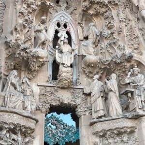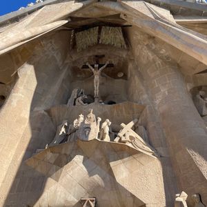 建物に入る前に、サグラダファミリアの全体を見渡せる、素敵なフォトスポットを教えてくださいました。参加したのが11月末ということで、周りにはクリスマスの飾りや出店が出ていて、スペインならではのクリスマス情報も知ることができました。中に入る前の彫刻についての解説や建物内部など詳しいことがわかり、より理解が深まったと感じました。エレベーターに乗るまでのツアーでしたので、降りてからは気になる展示を再度見に行ったり、トイレに行ったり、自由に行動できたこともよかったです。観光客の入場料やショップの売り上げなどを建設の費用にしていると聞きましたので、帰りにエコバックを買って帰り、なんとなく協力した気持ちであとにしました。