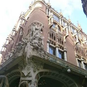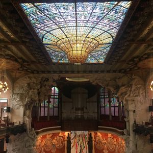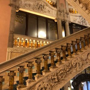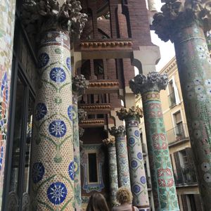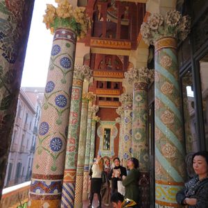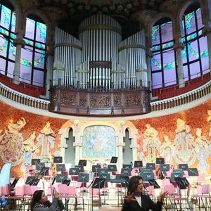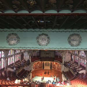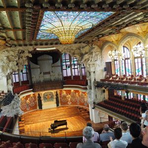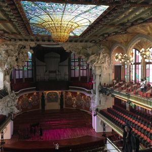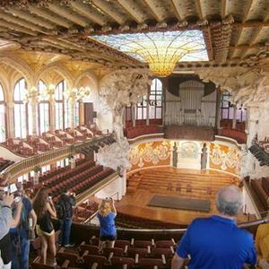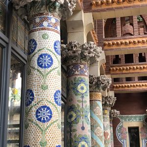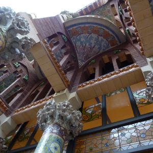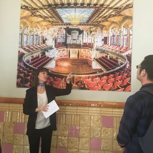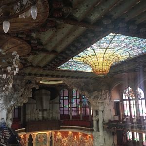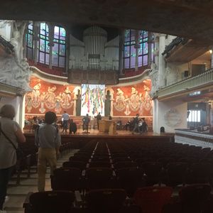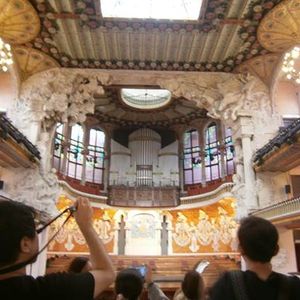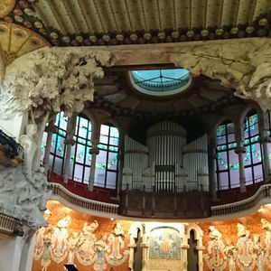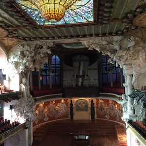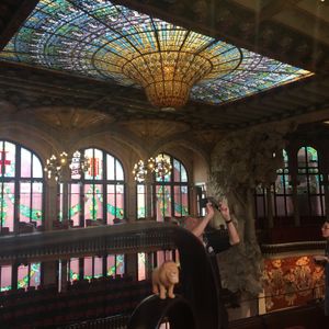 モンタネールが手がけるこちらの音楽堂はサグラダファミリアに引けを取らない素晴らしさです。天井にあるステンドグラスでできたものはとても美しいです。ガイドツアーではないと内部見学ができないので、バルセロナに訪れた際は必ず訪れた方がいいです。あまり英語は話せませんが、こちらのガイドさんはゆっくり、口を大きく開けてはっきりと発音してくれるので聞き取りやすく、良かったです。ちょうど午後のコンサートのリハーサルをしていたので、生の歌声を聴きながら、見学できたのでラッキーでした。