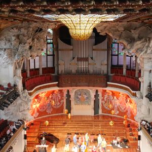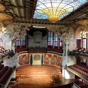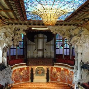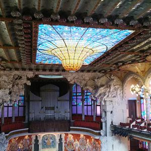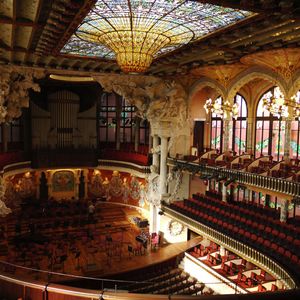 カタルーニャ音楽堂(Palau de la M?sica Catalana)は、スペイン東部のバルセロナにある、主にクラシックコンサートが開催される音楽ホールです。バルセロナの旧市街、ゴシック地区に位置し、20世紀初頭を代表するモデルニスモ(カタルーニャ地方のアールヌーボー)建築として有名です。外観は赤レンガで覆われており、一見シンプルな印象ですが、コンサートホール天井のステンドグラスをはじめとする絢爛豪華な内装には目を見張ります。