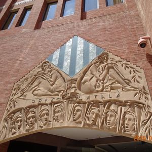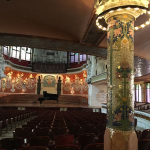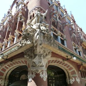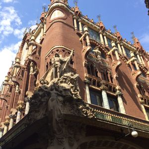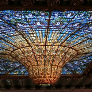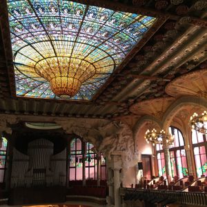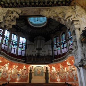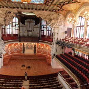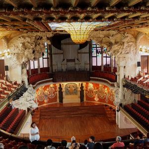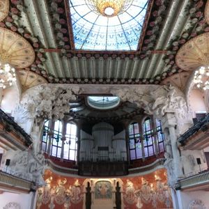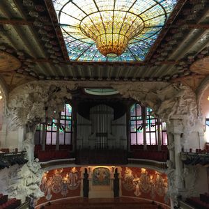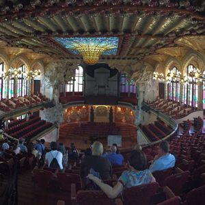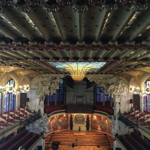 カタルーニャ音楽堂(Palau de la M?sica Catalana)は、スペイン東部のバルセロナにある、主にクラシックコンサートが開催される音楽ホールです。バルセロナの旧市街、ゴシック地区に位置し、20世紀初頭を代表するモデルニスモ(カタルーニャ地方のアールヌーボー)建築として有名です。外観は赤レンガで覆われており、一見シンプルな印象ですが、コンサートホール天井のステンドグラスをはじめとする絢爛豪華な内装には目を見張ります。
