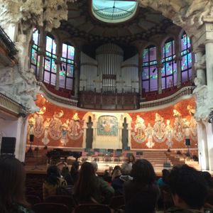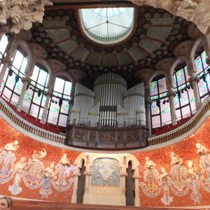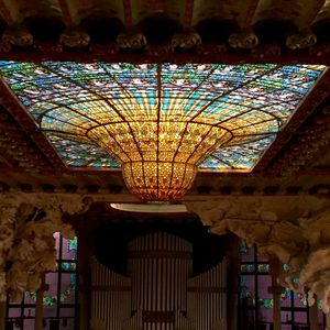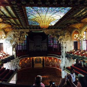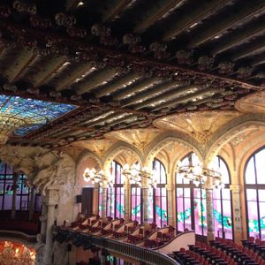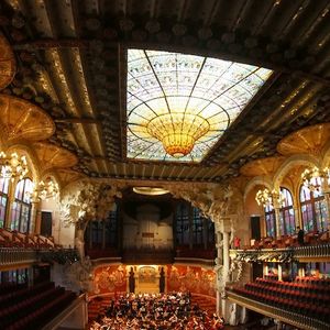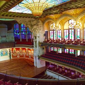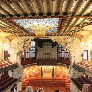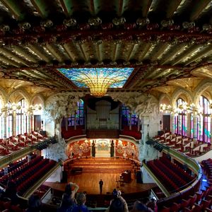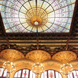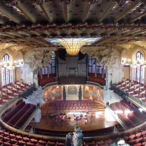 カタルーニャ音楽堂(Palau de la M?sica Catalana)は、スペイン東部のバルセロナにある、主にクラシックコンサートが開催される音楽ホールです。バルセロナの旧市街、ゴシック地区に位置し、20世紀初頭を代表するモデルニスモ(カタルーニャ地方のアールヌーボー)建築として有名です。外観は赤レンガで覆われており、一見シンプルな印象ですが、コンサートホール天井のステンドグラスをはじめとする絢爛豪華な内装には目を見張ります。