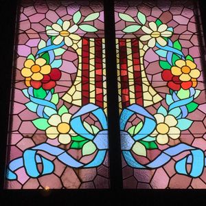 可愛い お花のモチーフのステンドや モザイクタイル 等 細かい飾りで埋め尽くされています