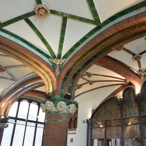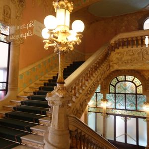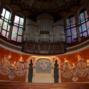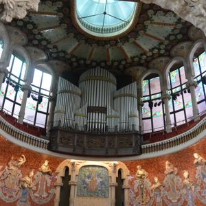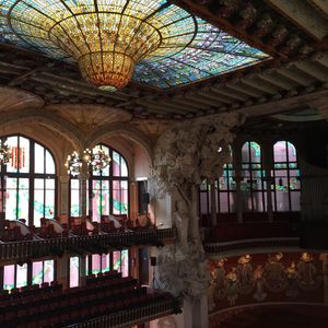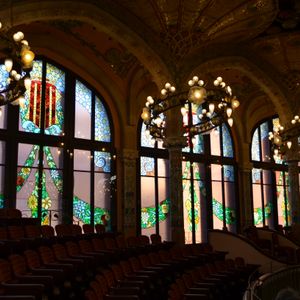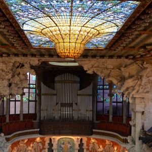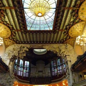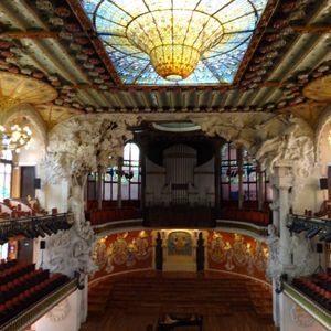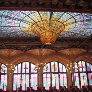 カタルーニャ音楽堂(Palau de la M?sica Catalana)は、スペイン東部のバルセロナにある、主にクラシックコンサートが開催される音楽ホールです。バルセロナの旧市街、ゴシック地区に位置し、20世紀初頭を代表するモデルニスモ(カタルーニャ地方のアールヌーボー)建築として有名です。外観は赤レンガで覆われており、一見シンプルな印象ですが、コンサートホール天井のステンドグラスをはじめとする絢爛豪華な内装には目を見張ります。