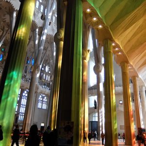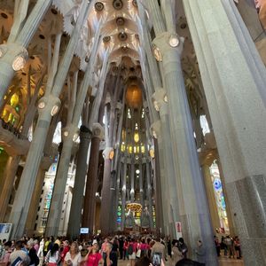 外観も圧巻ですが、中も素晴らしかったです。中は既にできあがっているとのこと。こんな明るいカテドラルは始めてでした。3時間のツアーですが、サクラダ・ファミリア観光は11:00~の約1時間で、その後、エレベータでタワーにのぼり、その後は自由にサクラダ・ファミリアを散策なので、+1.5時間見ておくとよいかもしれません。