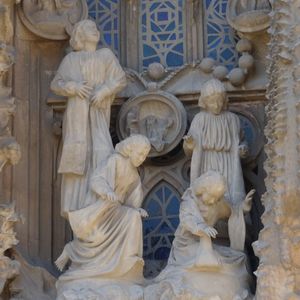 混雑する観光名所ですが、事前に予約済みのツアーなので、待つことなくサグラダファミリアに入場できました。日本語のガイドで、室内外の様々な造形物を解説していただき、建物の歴史もよく知ることができ、興味が膨らみました。