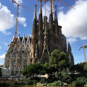 ツアーの日はとても天気が良く、サグラダファミリアの前で撮った写真を家族に送ると、パンフレットから切り取ったみたいに綺麗だねと言われたくらいです。ツアーのガイドさんはお土産屋さんの近くにいらっしゃって、私達が声をかけるとわかりやすい、ゆっくりとした英語で受け答えしてくださいました。 他のツアーの参加者さん達は英語圏の方?らしく、日本人は私達だけで不安でしたが、ガイドさんがちょくちょく気にかけてくださって、ウインクをしたり、ジェスチャーをしてくださったり、とても素敵なガイドさんでした。ツアーでの参加でなかったら、ただボーーっと見ていたと思いますが、ガイドさんがたくさん説明してくれたり、ゆっくりとまわってくれたので、とても記憶に残るものになりました!