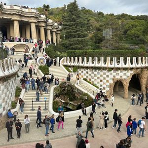 グエル公園は初めて乗る電車で少し迷いすごい坂道を登らなければ行けなく次のお昼の予約があったのであまりゆっくり見れませんでした。でもトカゲは見れたので満足です。その後はサクラダファミリア近くでお昼を食べました。想像と少し違いましたが美味しかったです。サクラダファミリアは混んでましたがすぐに入れてよかったです。チケットの予約を自分でするのが面倒という方にオススメです。私は凄くよかったです。