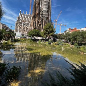 また、私たちはサグラダファミリアの近くのホテルに宿泊していたのですが、サグラダファミリアを見学した際に、「夜になると隣の公園の池に逆さサグラダファミリアが映ってとても良い写真が撮れると聞いてるが本当でしょうか」と伺うと、「池の水が例年より少ないので微妙ですが、トライしてみる価値はあると思いますよ」とアドバイスをいただき、その夜撮影に行ったところ、すごく綺麗な逆さサグラダファミリアを撮影することができました。