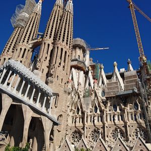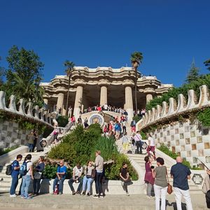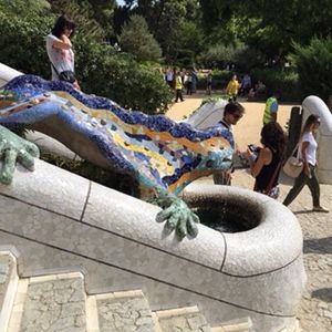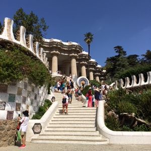 日本人ガイドさんさんに案内され、サクラダ・ファミリア、グエル公園を観光することができました。サクラダ・ファミリアの全景が入る絶景ポイントで写真を撮ってくれました。ステンドグラスはとても美しく、エレベーターで上がった塔の上からの眺めは素晴らしかったです。グエル公園では、有名な破砕タイルで覆われたトカゲや波打つベンチやピンクのガウディの家を見ることができます。
