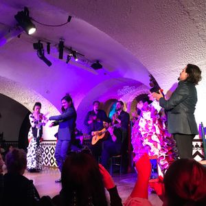 ダンスを習っていた母を連れて行くために予約しました。お店は賑やかな通りに面しており、地下鉄の駅からすぐで、とてもわかりやすかったです。バルセロナでは本格的なフラメンコは見られないかもと思っていましたが、迫力満点でギター演奏や歌もよく、とても楽しめました。料理もスペイン料理がいろいろそろっていて、とても食べやすかったです。お店の方はとても親切で、お酒もいろいろ勧めてくれます。ディナー付きの席を頼んだので、一列目ど真ん中でした。汗が飛んでくる近さです。私たちの時は、女性ダンサーが二人と、男性が一人、昔踊ってたという雰囲気の女性歌手、ギター3人、男性歌手2人の舞台でした。後で写真もメールに送ってくれたり、とても感じが良かったです。安心して過ごせるので初心者の方にはお勧めのプランです。