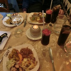 ・入店早々にビュッフェで男性も女性もイケます。どこもそうですがサラダ系は少ないですね。飲み放題でワインなどやりすぎると肝心のフラメンコを朦朧酩酊状態で見ることになるのでそこそこにして私はエスプレッソにしました。仲間の一人は飲みすぎて死んでました。。。