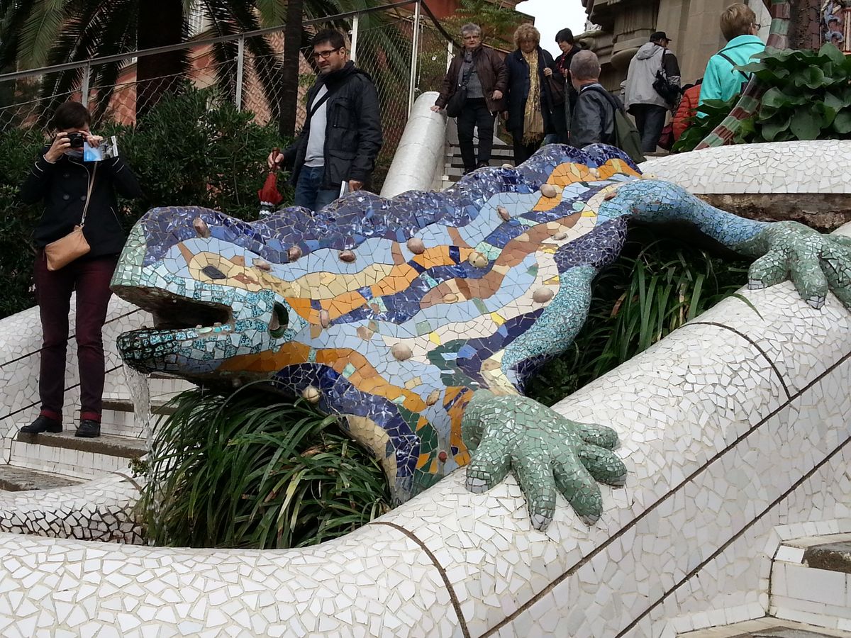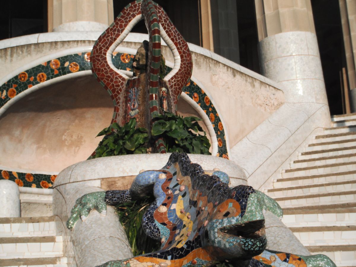 グエル公園はバス停から結構な坂道を登らないといけないので女性は歩きやすい靴が良いと思います。それと砂埃がひどく黒い靴が黄土色になってしまいました。