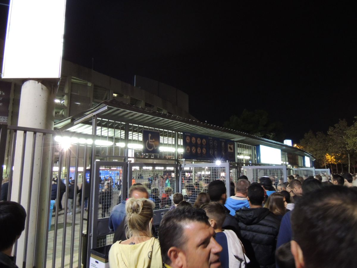 カンプノウの雰囲気をたっぷり味わいたかったので、スタジアム付近で早めの夕食を済ませ(ここにもユニフォームを着た人ばかりでした)、2時間前にはスタジアムへ。(ユニフォームのストアなどはあまり見かけなかったので事前に街中のofficial Storeなどで買うとお勧めです)