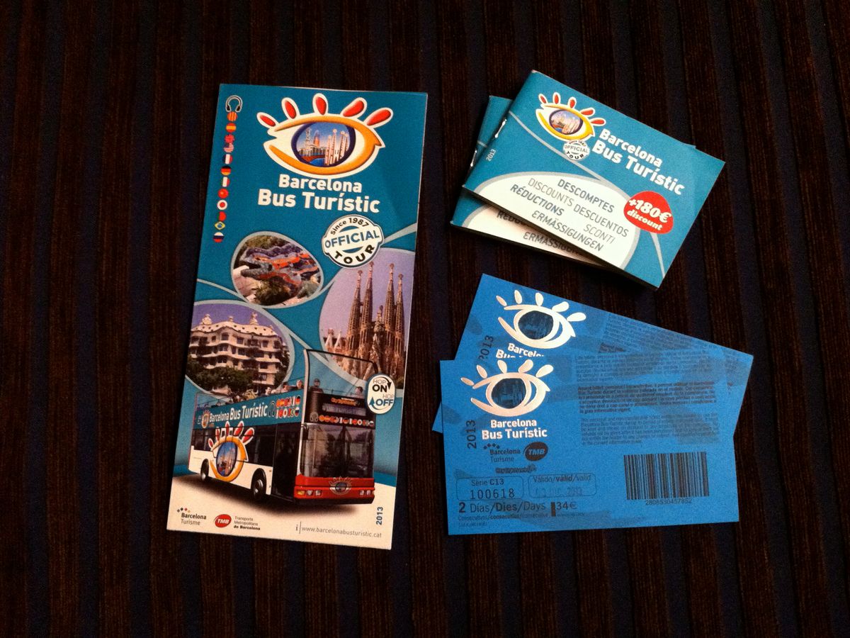 まず、バルセロナに着いたらカタルーニャ広場の地下にある観光案内所でチケットと交換ですね。割引チケットの小冊子をもらえるので、バス利用日が後日でも絶対にまずチケット交換しましょう。カサ・バトリョ、カサ・ミラの入場割引もあります。