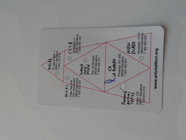 ピカソ、ミロ、ダリ、カタルューニャ博物館、バルセロナ現代博物館、CCCB、カサ・ミロ(住居)、アントニオ・タぺスの7つの博物館66ユーロが30ユーロで見学できました。それぞれの博物館入り口で、列にならんでチケットを購入している方をしり目に入口に並んでセキュリティチェックを通過したり、入場料で躊躇している人を横目に改めて、この「3ヶ月間有効で1回は入場できる今回のチケット」の便利さに改めて、本チケットをインターネットで探して旅行前に申し込んでいて非常にうれしかったです。