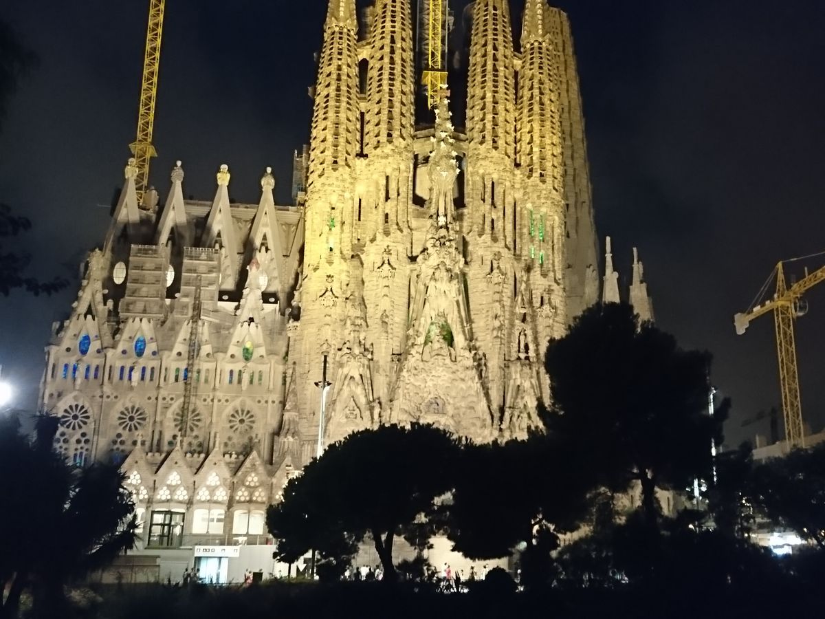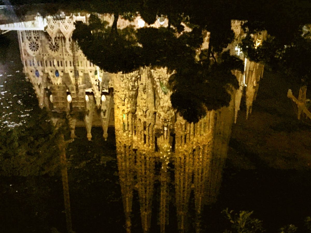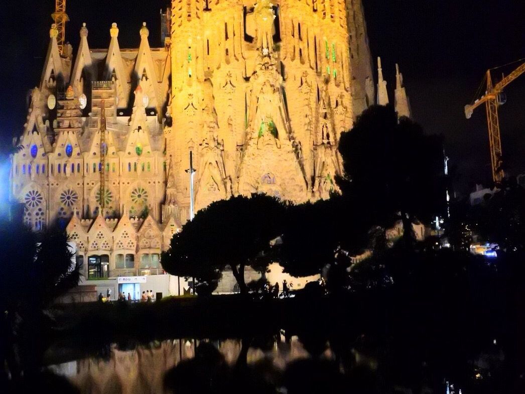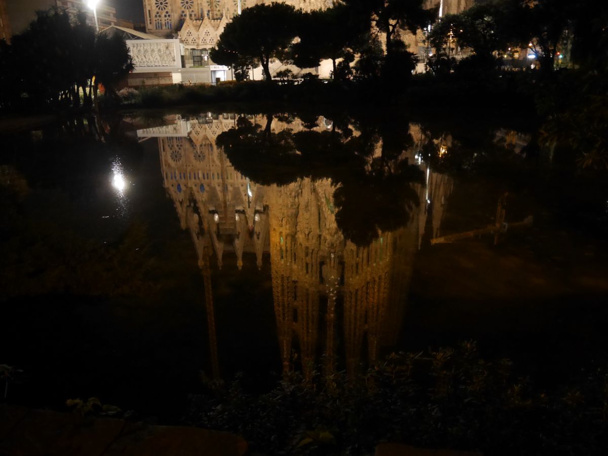 夜のサグラダファミリアと池に映るその姿もとてもきれいでした。