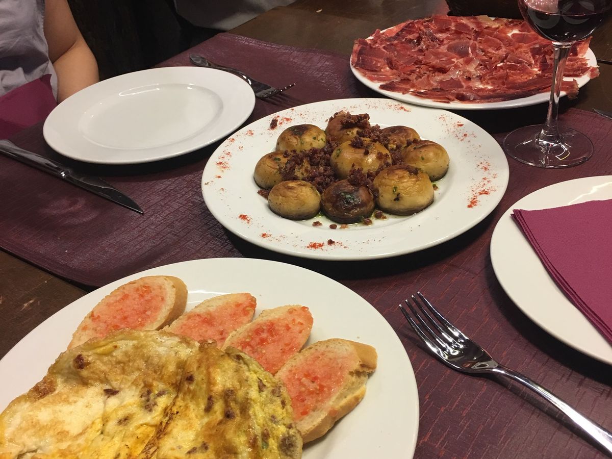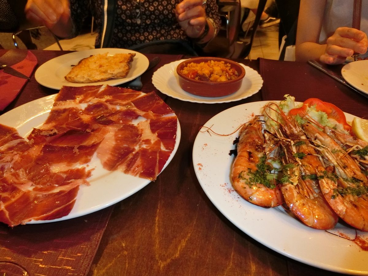 1軒目ではピンチョス、二軒目ではイベリコ豚、エビの揚げ物なのみんなでシェア、3軒目では念願の生ハムを食べることができました☆ガイドさんがとっても物知りで親切でたくさんお話しできてたのしかったです!