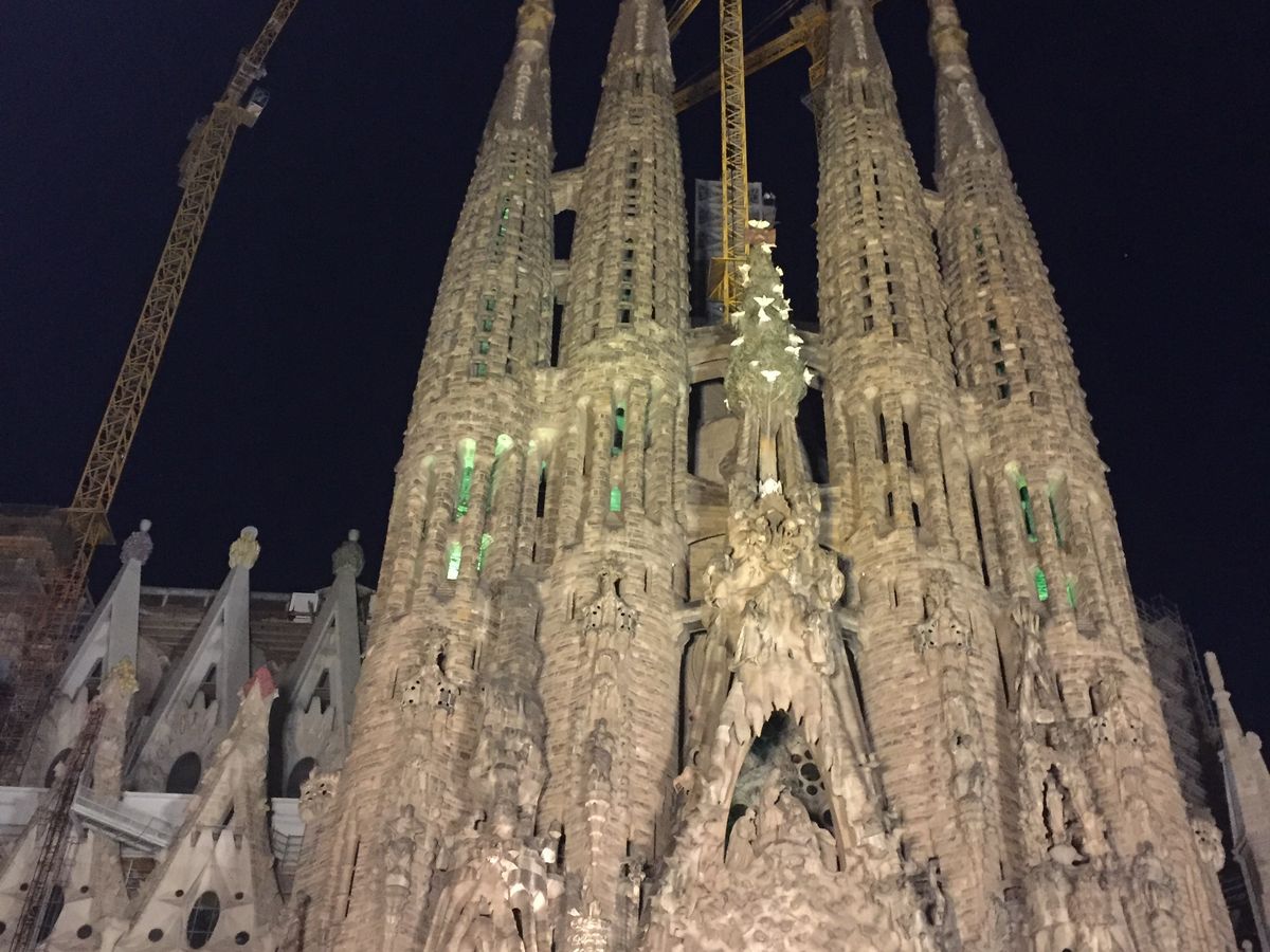 ライトアップされたサグラダファミリアは息を呑む美しさでした。