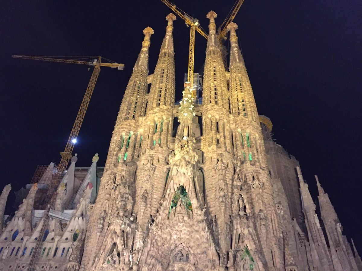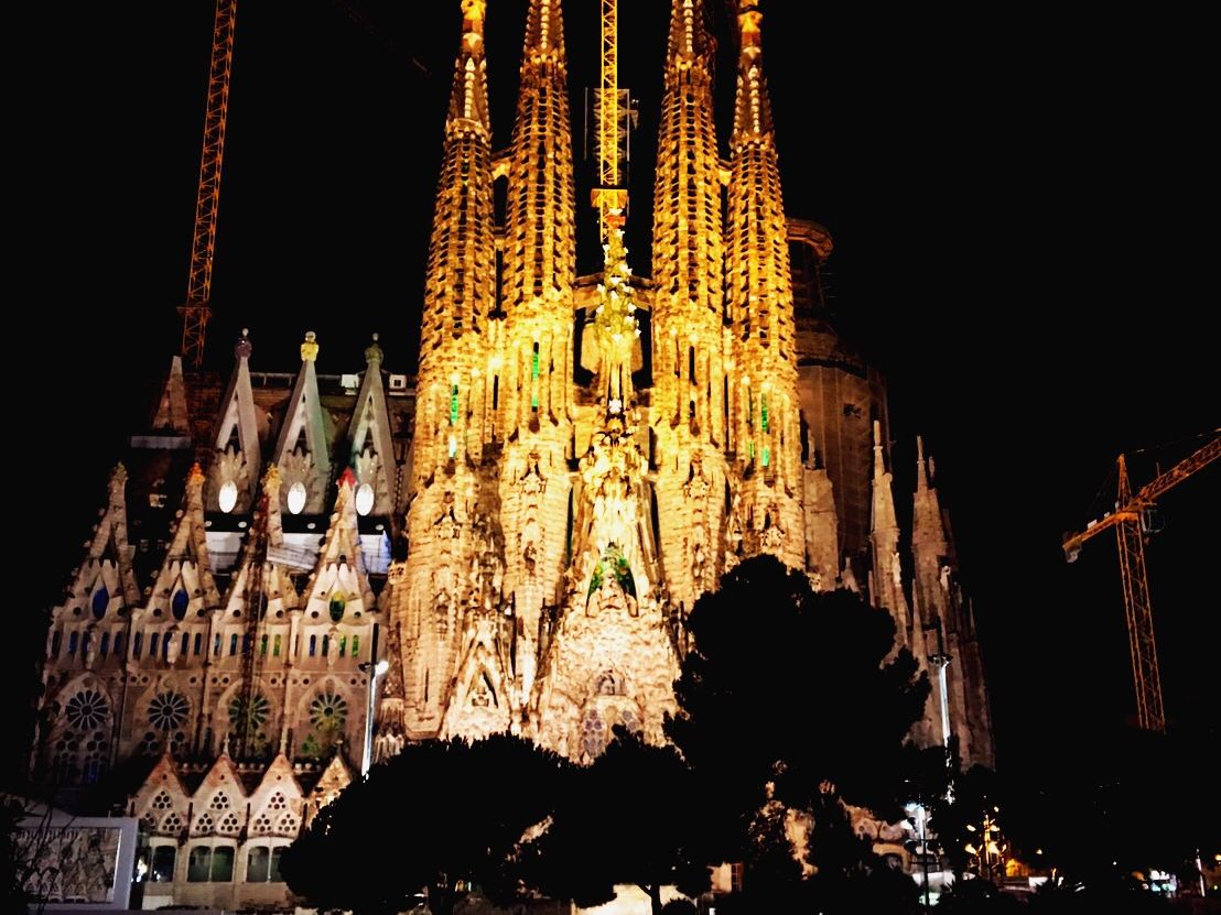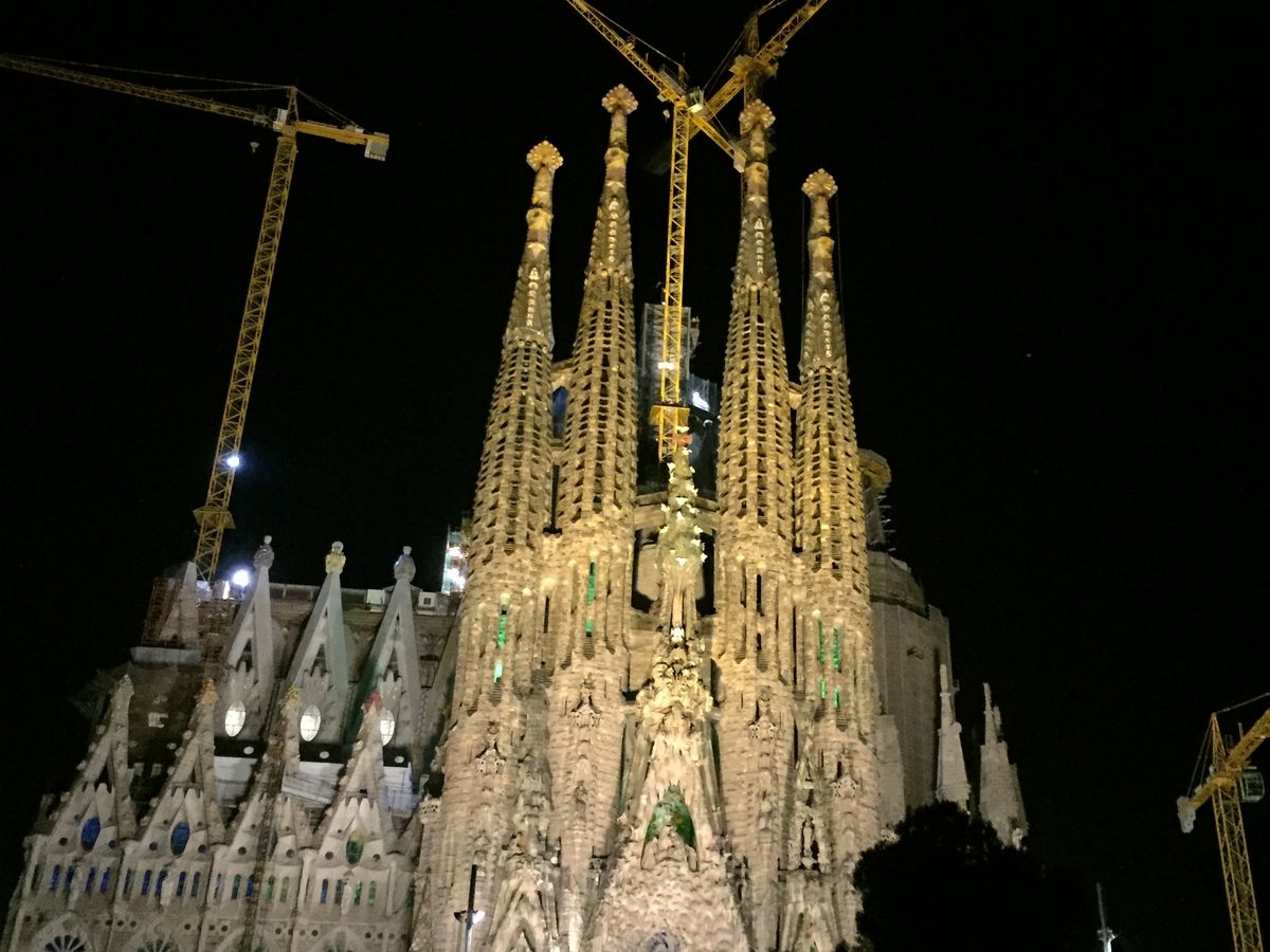 夜のサクラダファミリアも池にきれいに反射した風景とともに、雲にサクラダファミリアの影が映る珍しい景色を見ることができました。ぜひ皆さんにお薦めします。