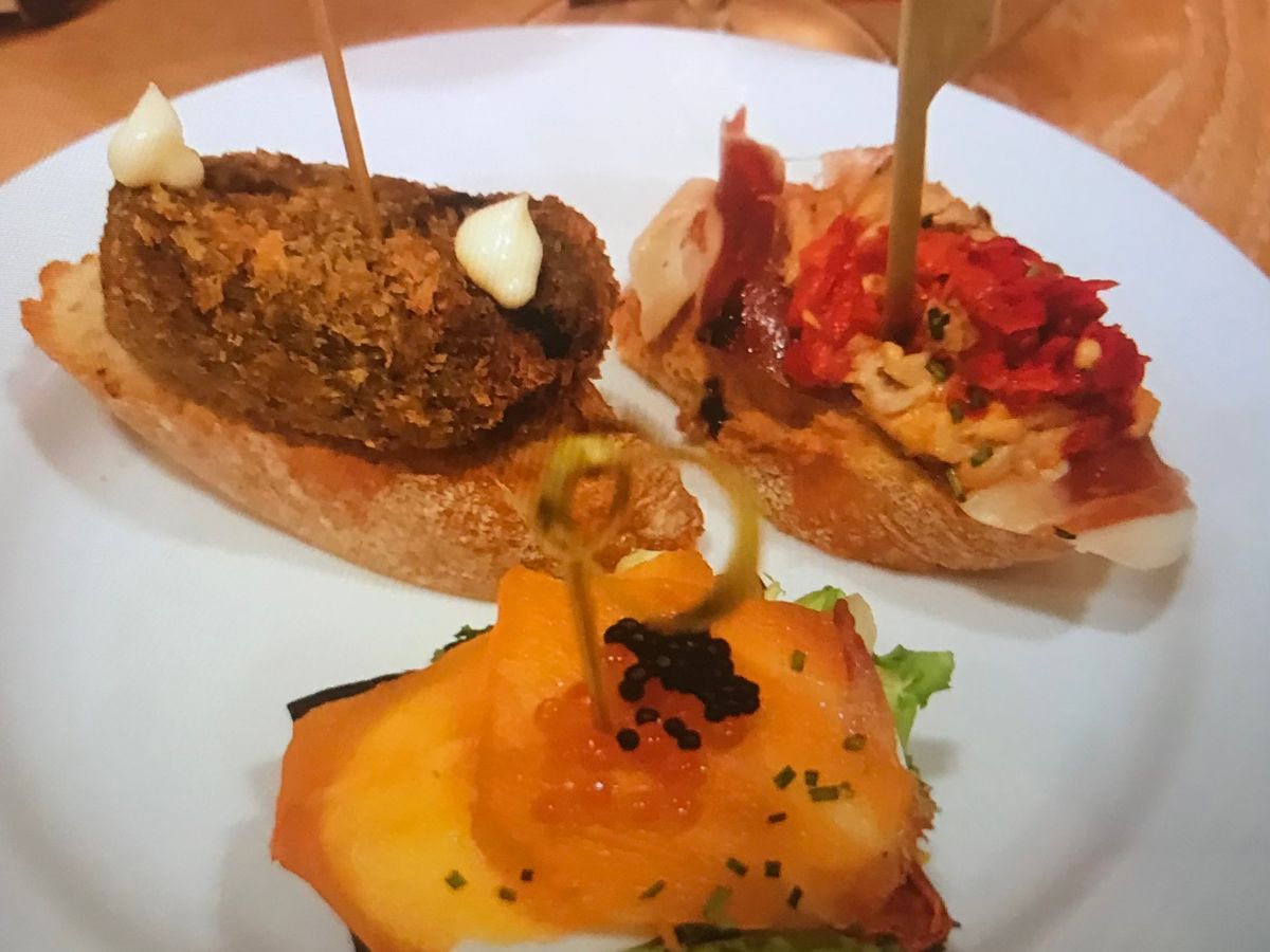 3軒目は1人3皿のタパスを選択。冷&温物があり悩みました。悩んだら、ガイドさんにおすすめを聞いても良いと思います。(私たちは見た目で好きな物を選びましたが)