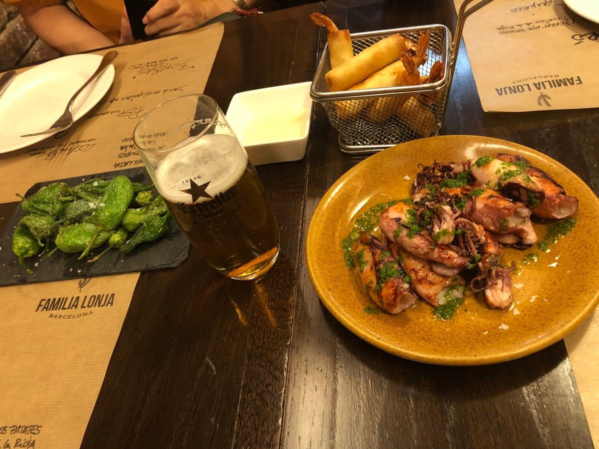 バルでタパスを美味しくいただきお酒も美味しかったです、日本人には十分な量です。最後のサグラダファミリアのライトアップされた夜景はとてもきれいでした。昼間より良いかと思います、人も少ないですし。