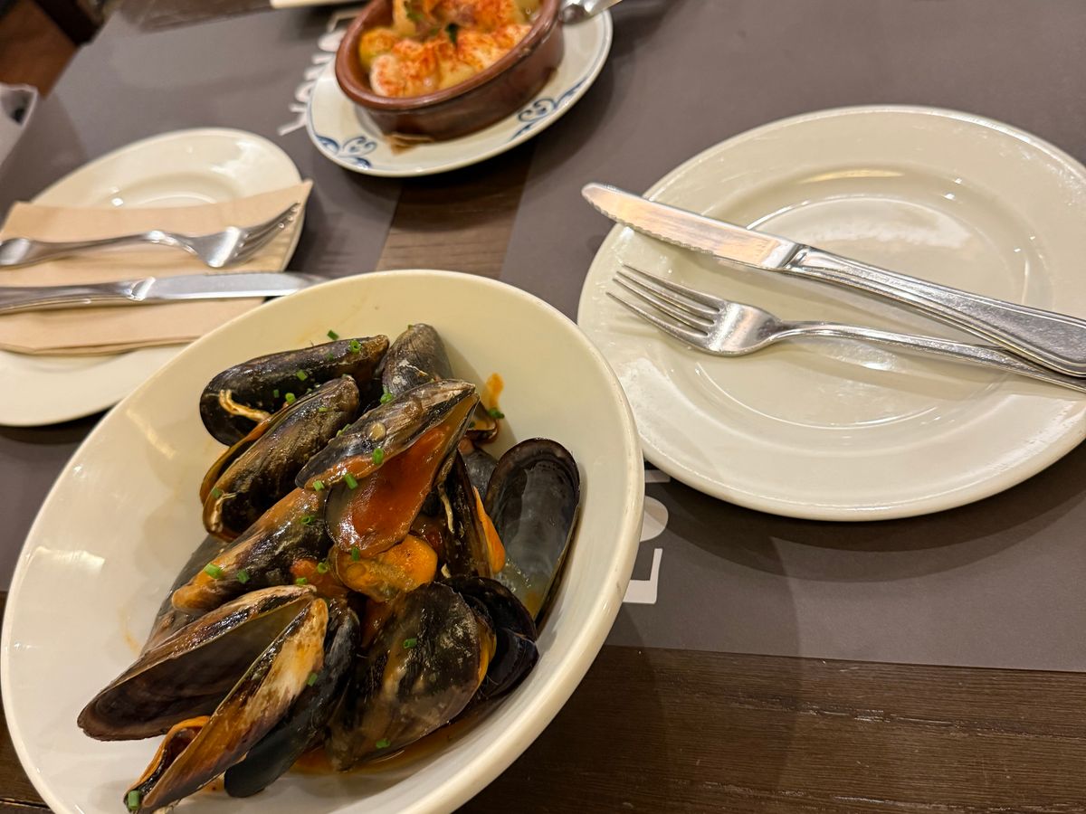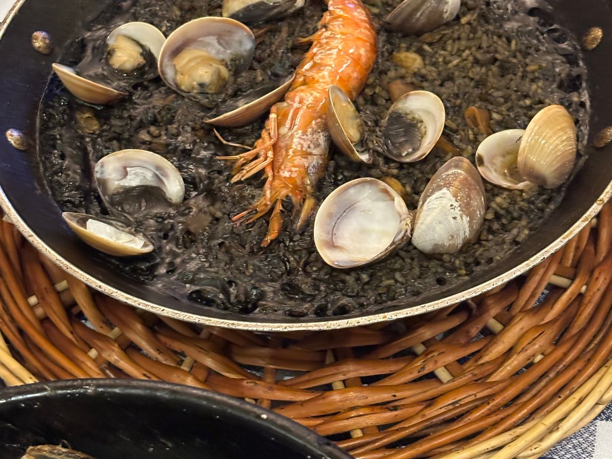 3軒目では、イカ墨パエリアとムール貝、それにカルソッツ(ネギのような玉ねぎを炭火で焼いてロメスコソースにつけて食べる)とここでは、スペイン・カタルーニャ地方を代表する食べ物をご紹介いただき大感激でした。