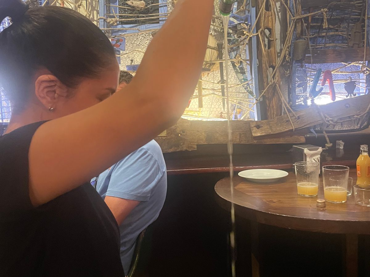 最初にサンタ・エウラリア大聖堂や水道橋を案内していただき、なんと意外な場所にピカソの絵があることも教えてもらいました。写真も撮っていただきながら、1軒目はピンチョスのお店。1つのピンチョスが想像以上に大きくてボリュームがあり、2つ選ぶだけでも大満足。おすすめの「ビールのレモンジュース割」も爽やかでとても美味しかったです。