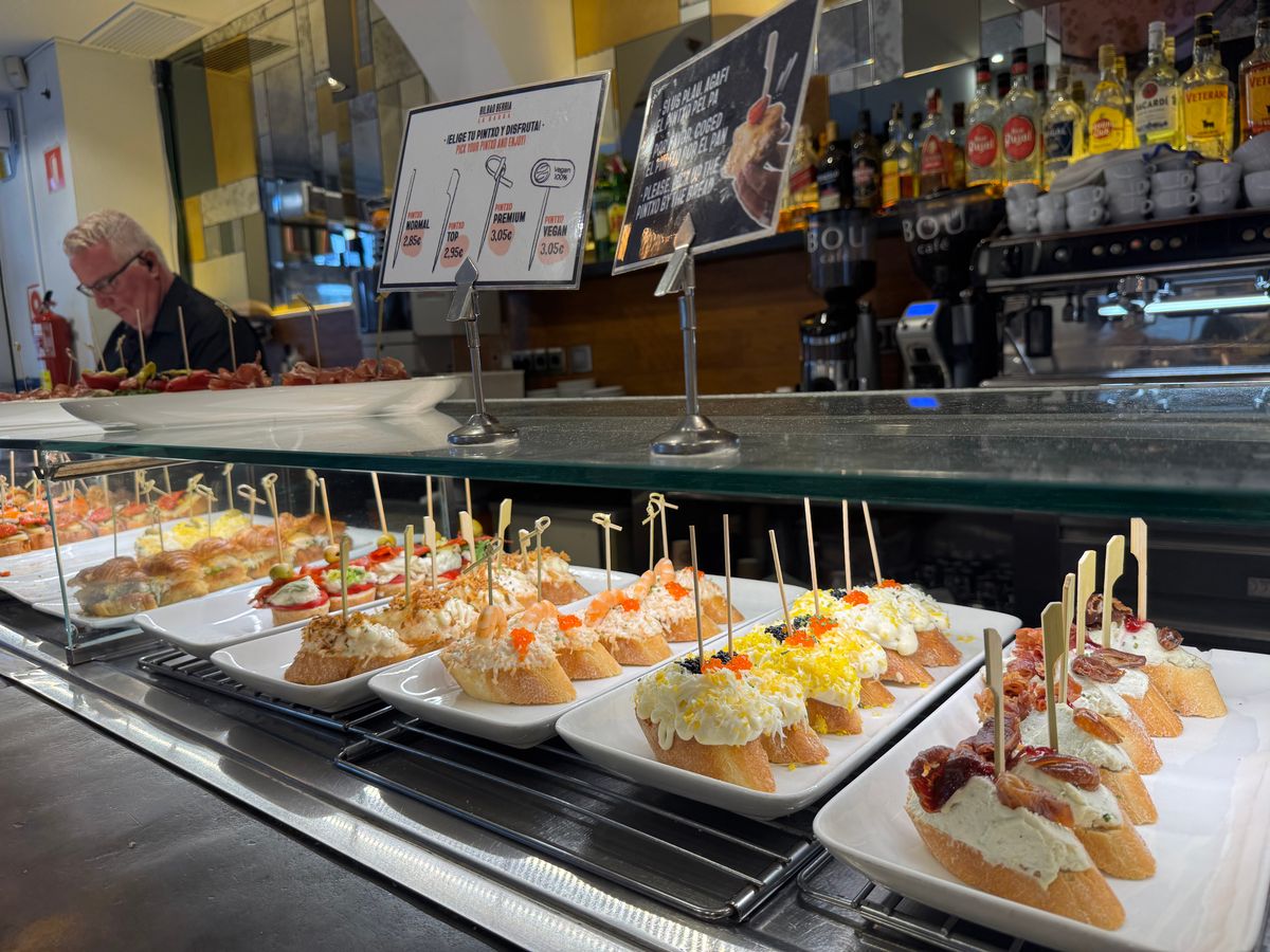 最初にクリスマスマーケットに行き、その近所のバルでピンチョス(3個+1ドリンク)を食べましたが、オーダーの仕方などを教わりました。