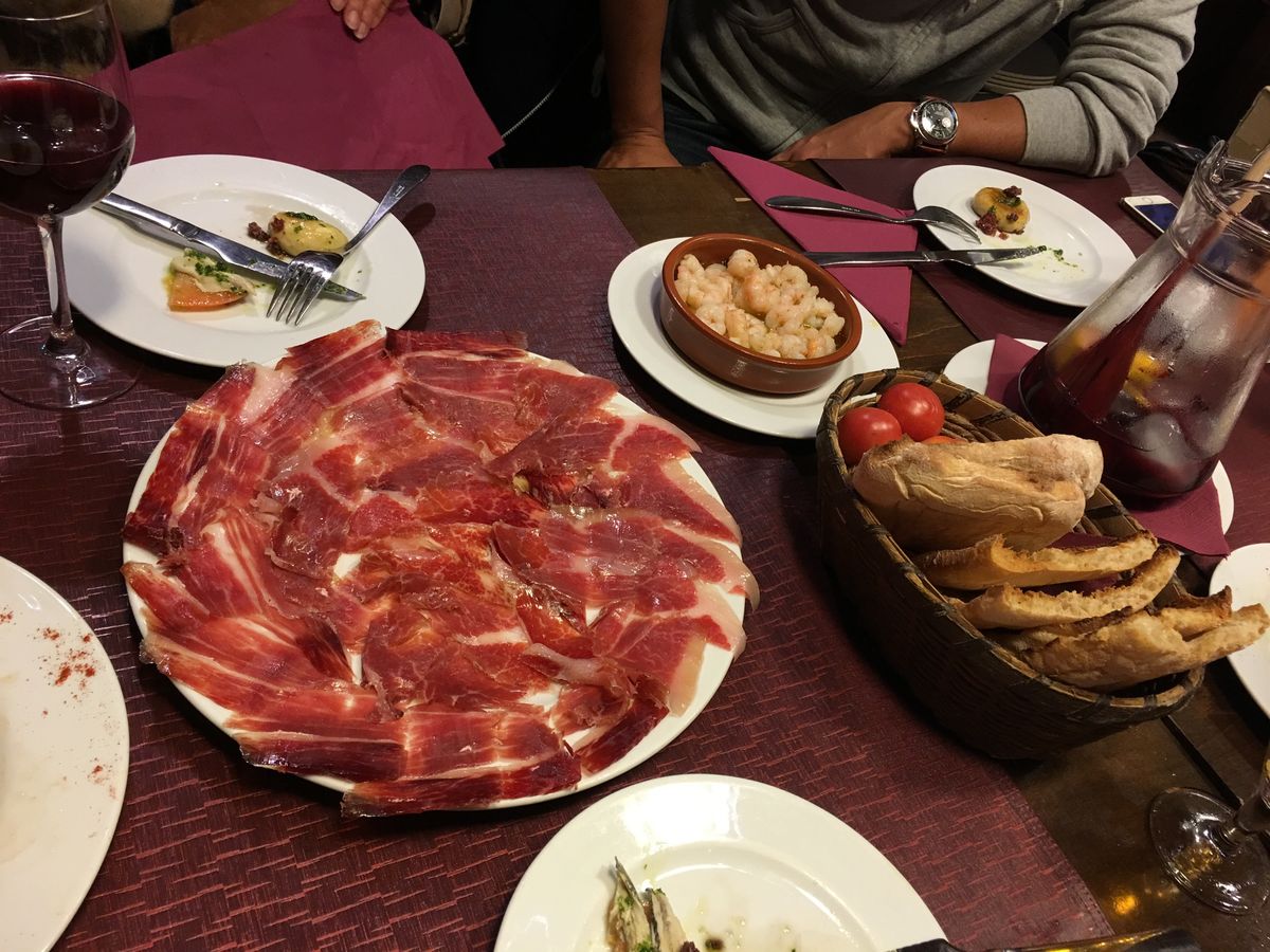 もちろんバルも皆様書かれていたように大満足でした。一人だったのでシェアはできませんでしたが、それでもピンチョス3品、タパス2皿、そしてハモン イベリコ ベジョータ(これはほぼ独りで食べたので超お得ですね♪)とパン コン トマテとお腹いっぱいになりました。ちなみに生ハムは余った分を持ち帰らせていただき、旅の間中ホテルでのおやつにしていましたが、最後まで本当においしくいただけました♪