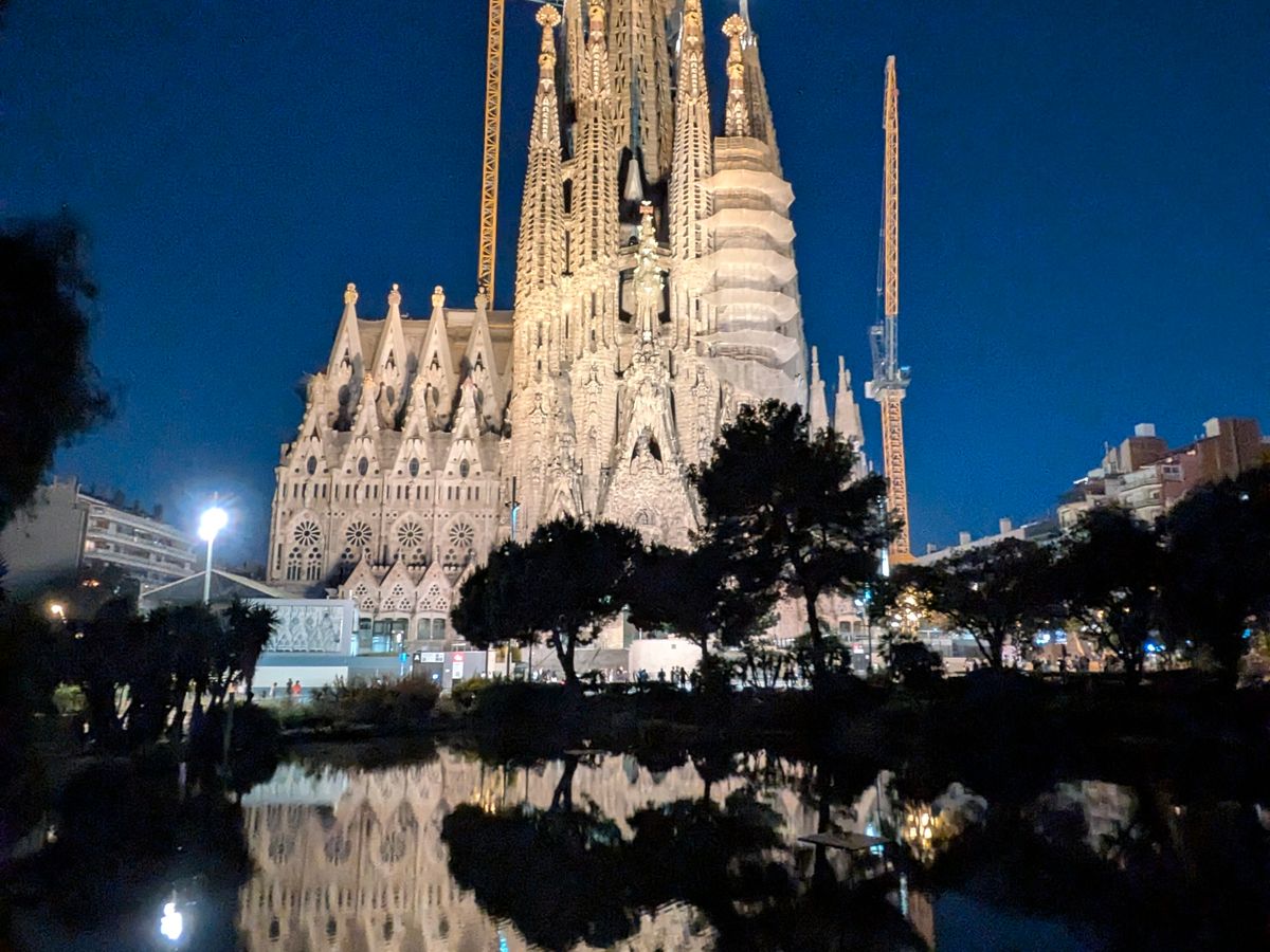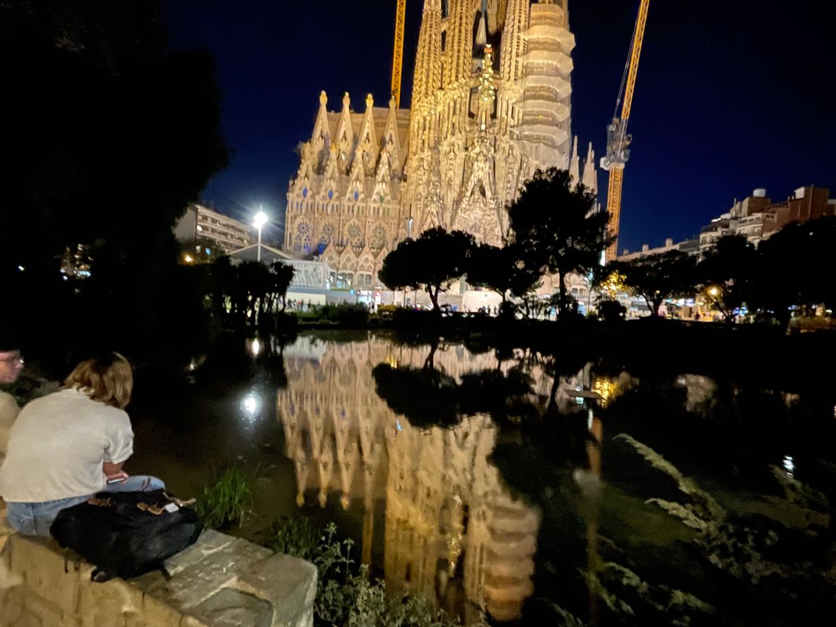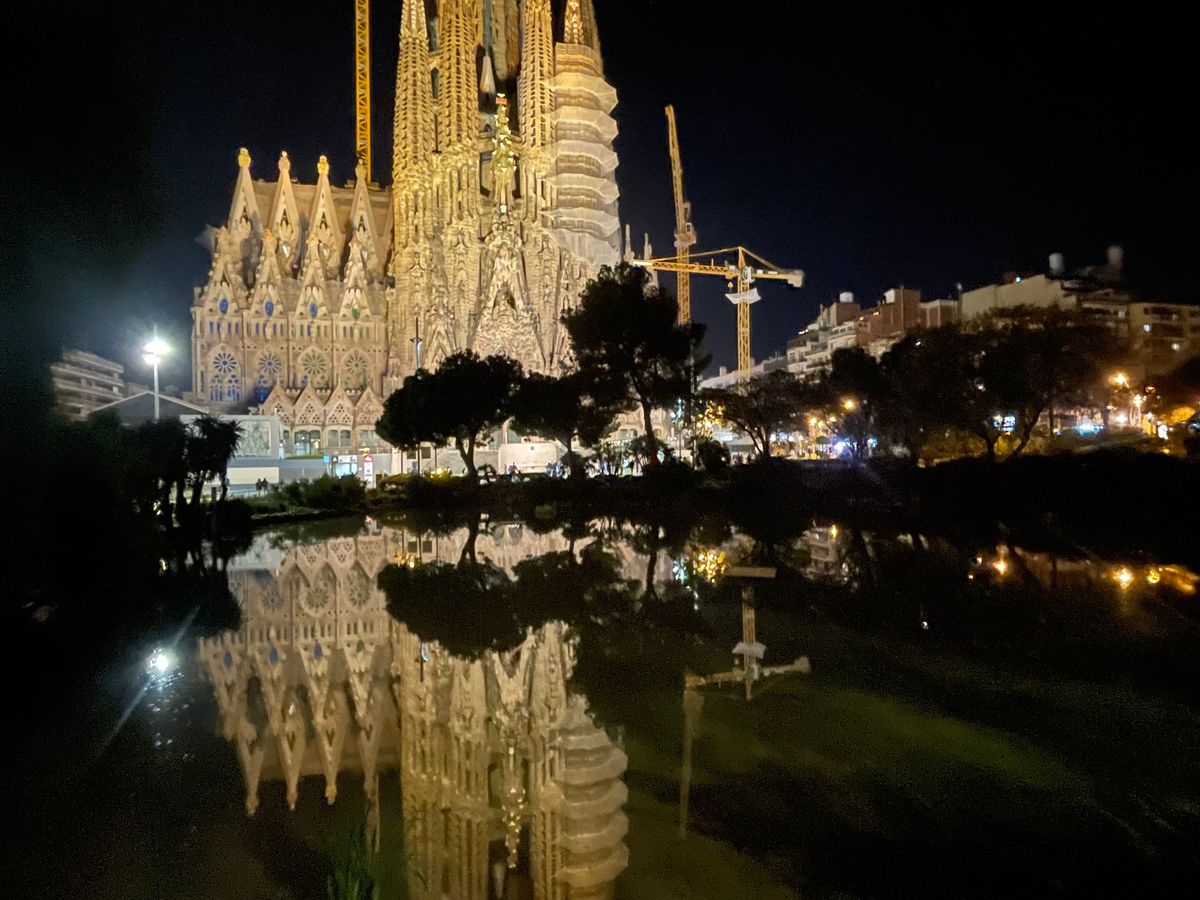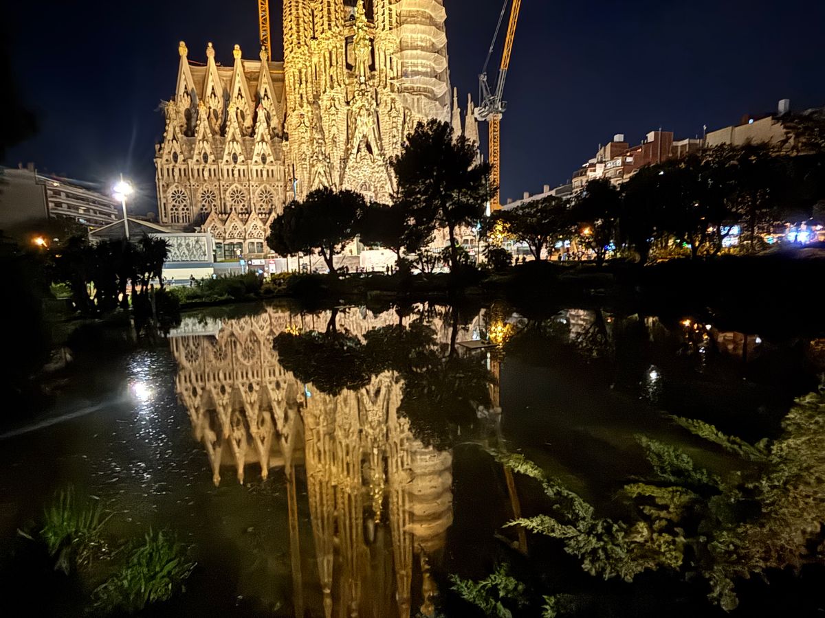 夜の池に写るサクラダファミリアは最高でした。