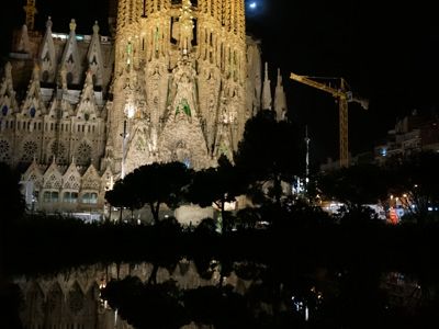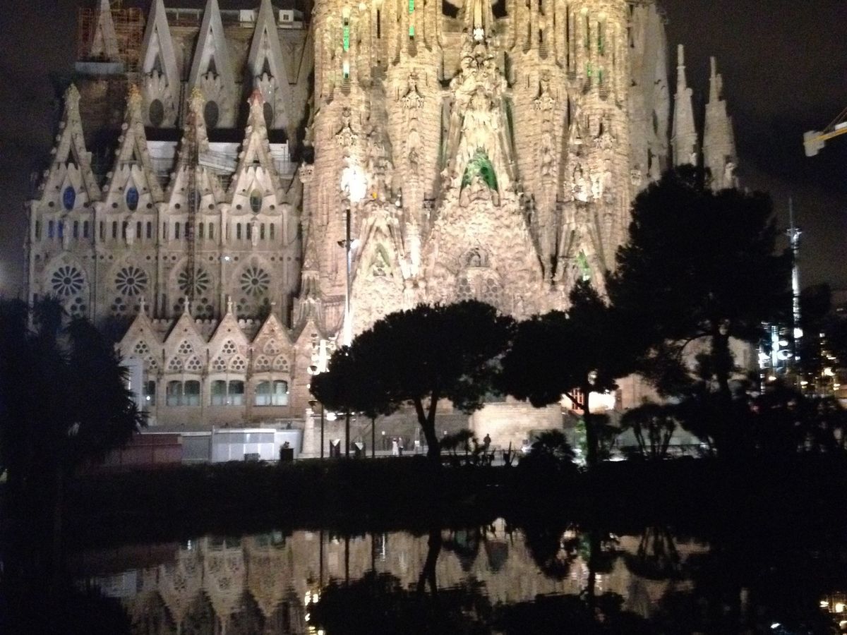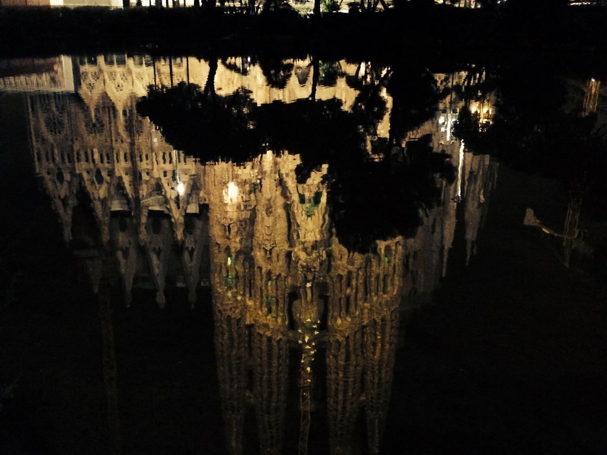 池に映るサグラダファミリアの夜景…素晴らしいです!
