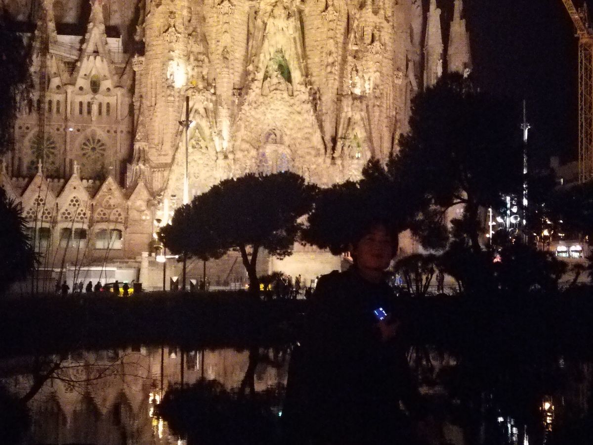 夜のサクラダファミリアでガイドさんの栗本さんに奇跡の一枚の写真も撮って頂きました。