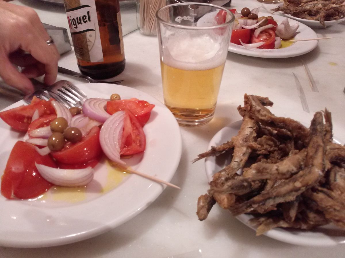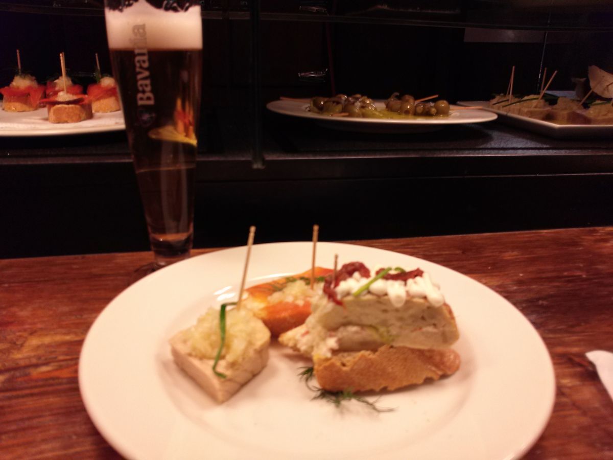 ピンチョス3品とビールのカクテル。その後はサグラダファミリアに
