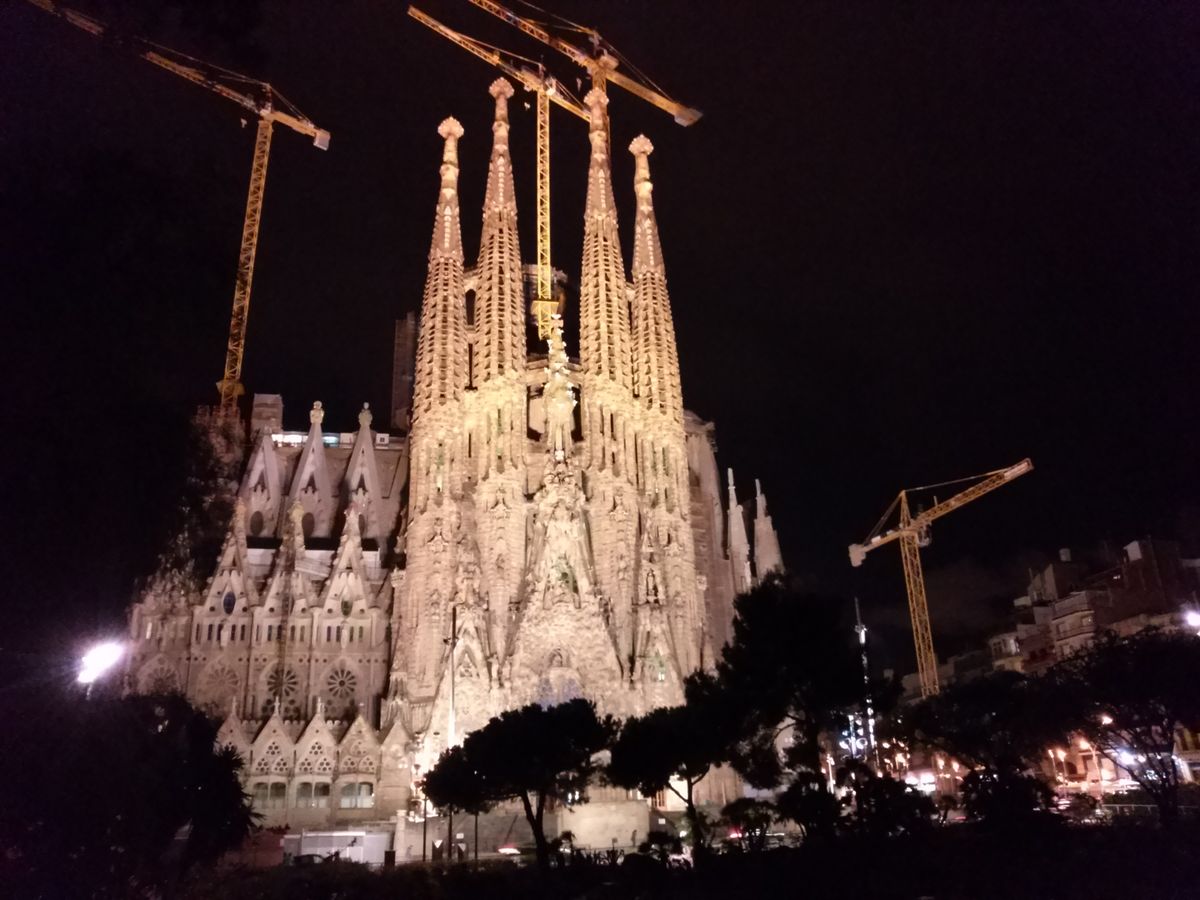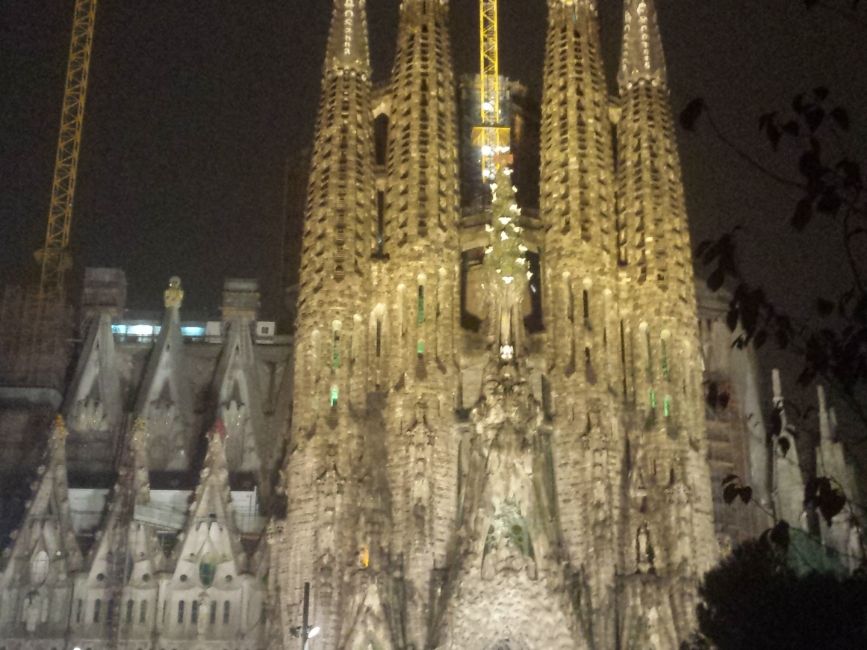 午前中に着いたので、後日行くサグラダファミリアの下見をしていたので昼間の様子との違いにびっくりしました。ライトアップされとても神秘的でした。